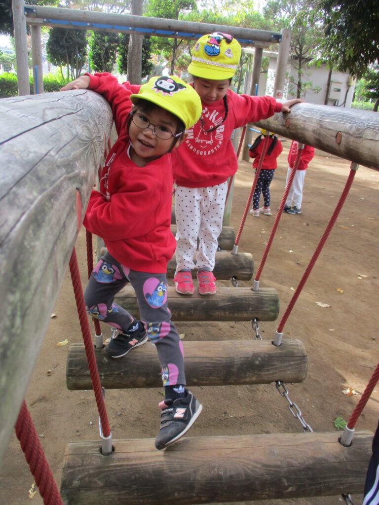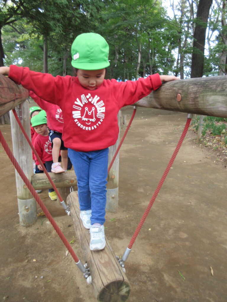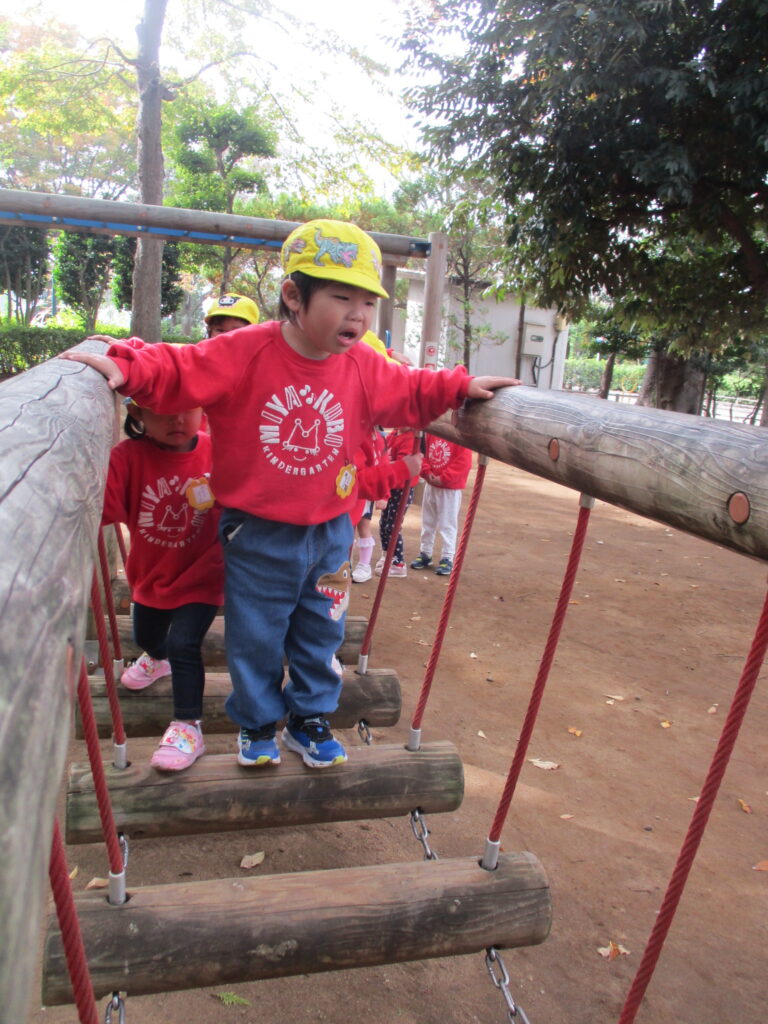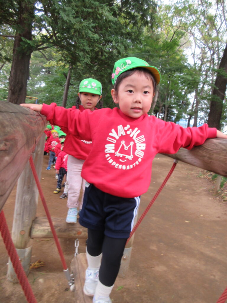 宮久保NOW 11月の園生活・幼稚園バスで園外保育(11月5日松戸市東部スポーツパーク) 2025.11.08 雨で順延となった年少児園外保育が11月5日行われました。 幼稚園からバス乗り場までみんなで手をつなぎ、坂道を降りて、幼稚園バスに乗り、松戸市東部スポーツパークへ! とんぐり拾い・森のアスレチック・公園の遊具・お弁当をみんな楽しみました。