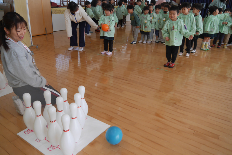 宮久保NOW 1月の園生活(始業式&新年子ども大会) 2026.01.06 あけましておめでとうございます! 1月6日から全学年が1年の集大成となる3学期が始まりました😊 (2号認定の子ども達は5日から預かり保育わくわくが開始) ホールでは始業式を行い、3学期の様々な行事に期待を高めた子ども達✨ その後、かるたや福笑いなどお正月ならではの遊びとボーリングやロボット遊びも新年子ども大会で楽しみました🎵