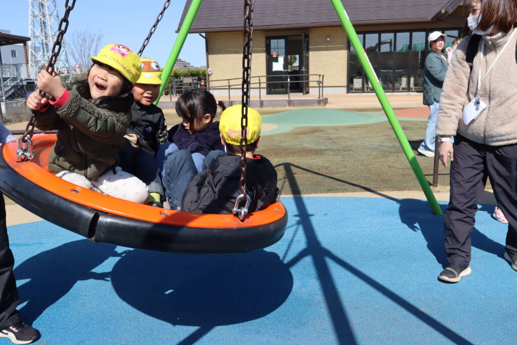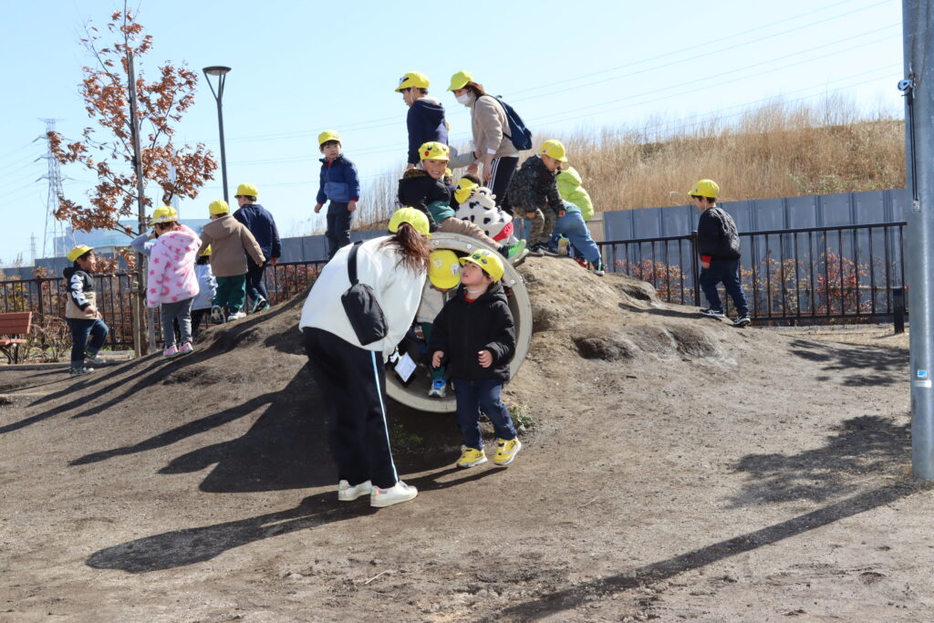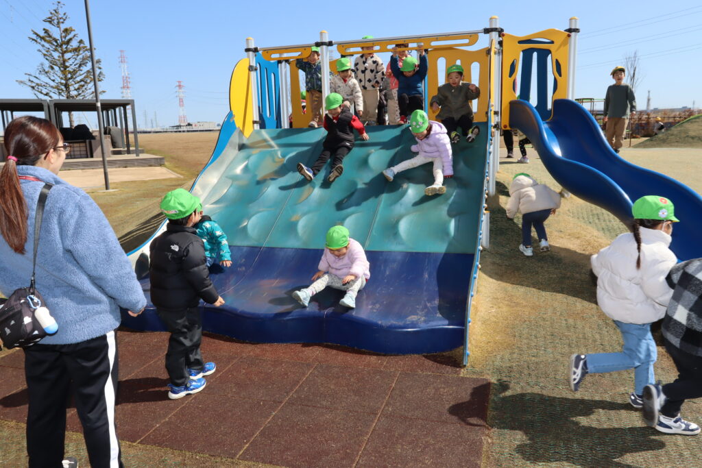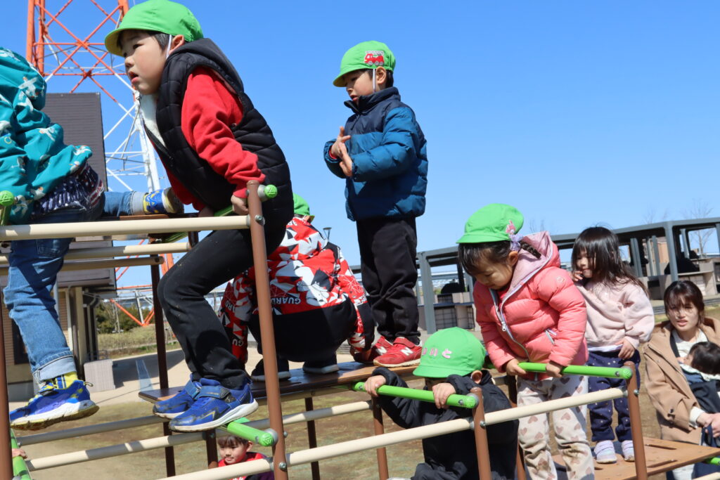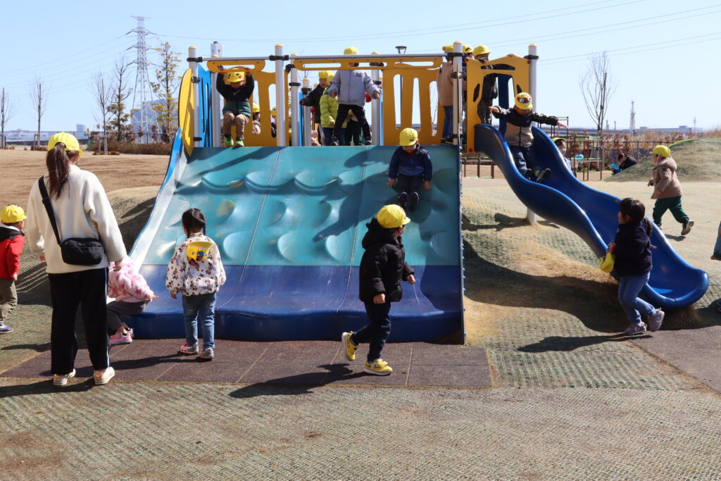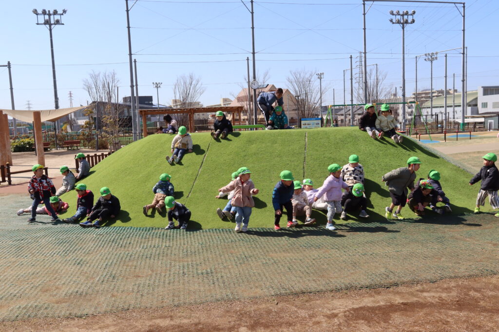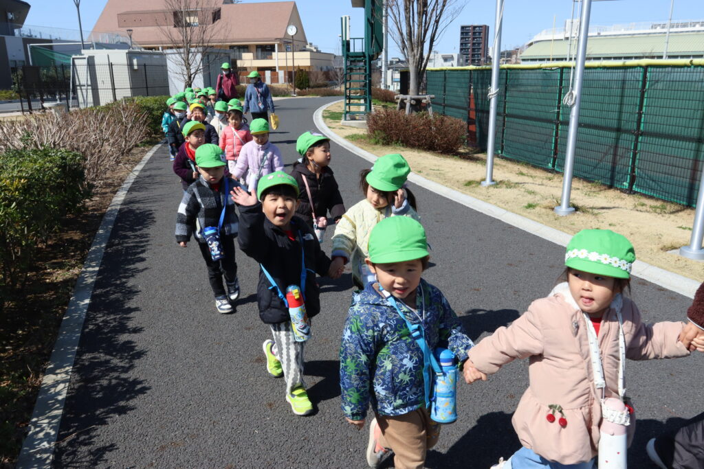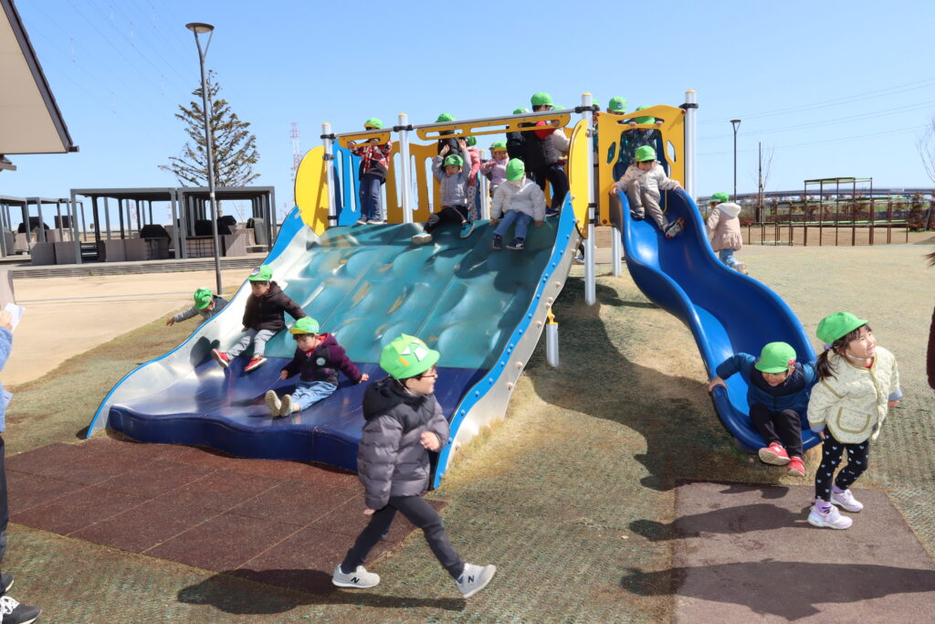 宮久保NOW 3月の園生活(5日 年少児お別れ遠足) 2026.03.05 宮久保幼稚園3歳児年少の子ども達は、幼稚園バスに乗って妙典のぴゅあぱーくへお別れ遠足に行きました。 強風でしたが、春のような暖かい天気のもと色々な遊具で遊び、一年間一緒に生活したクラスのみんなで、楽しい一日を過ごしました。