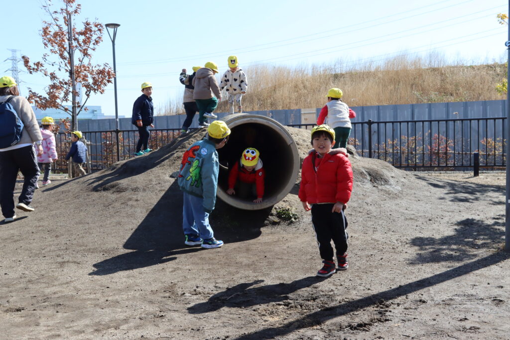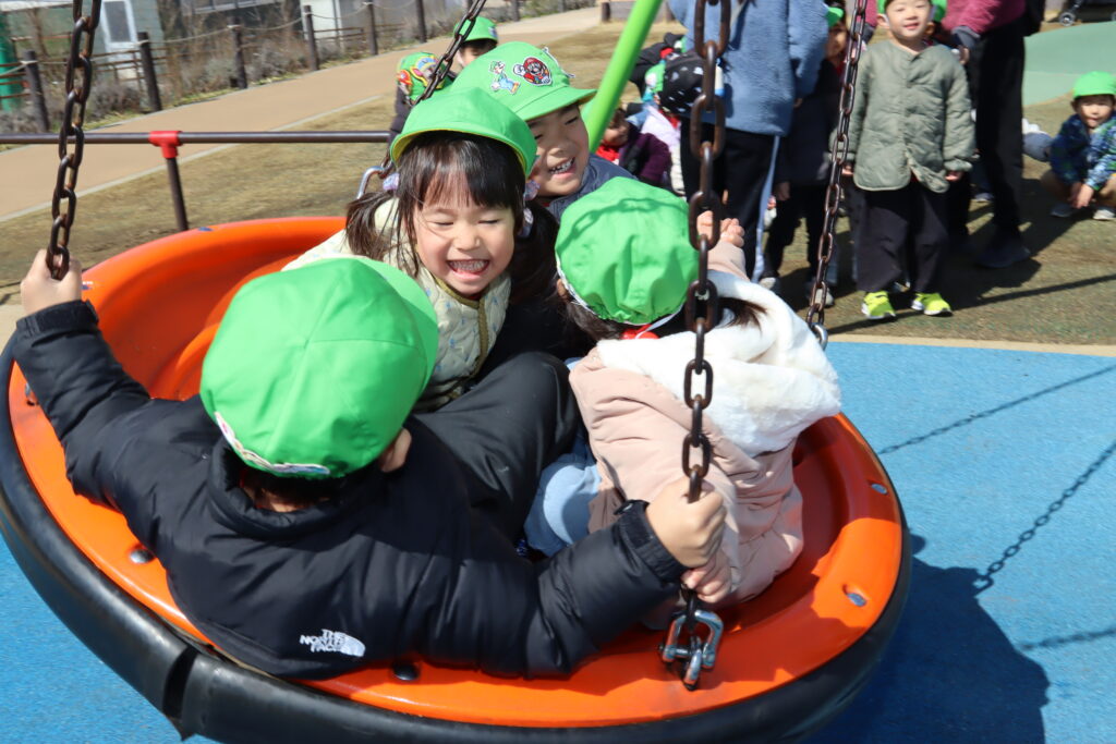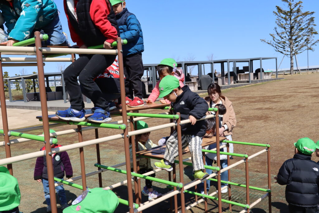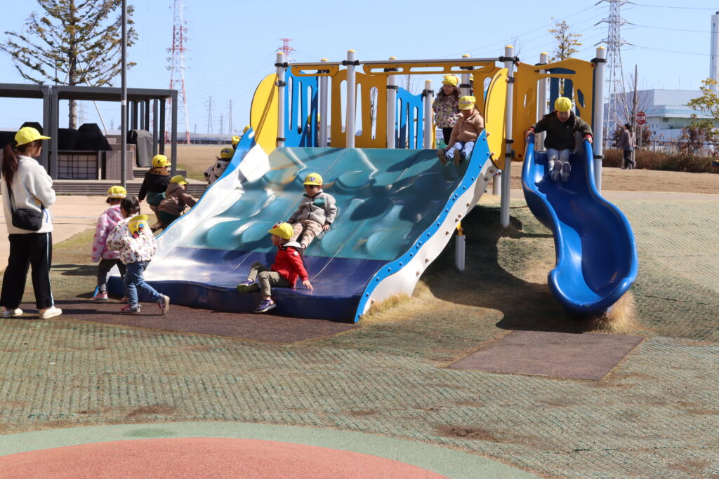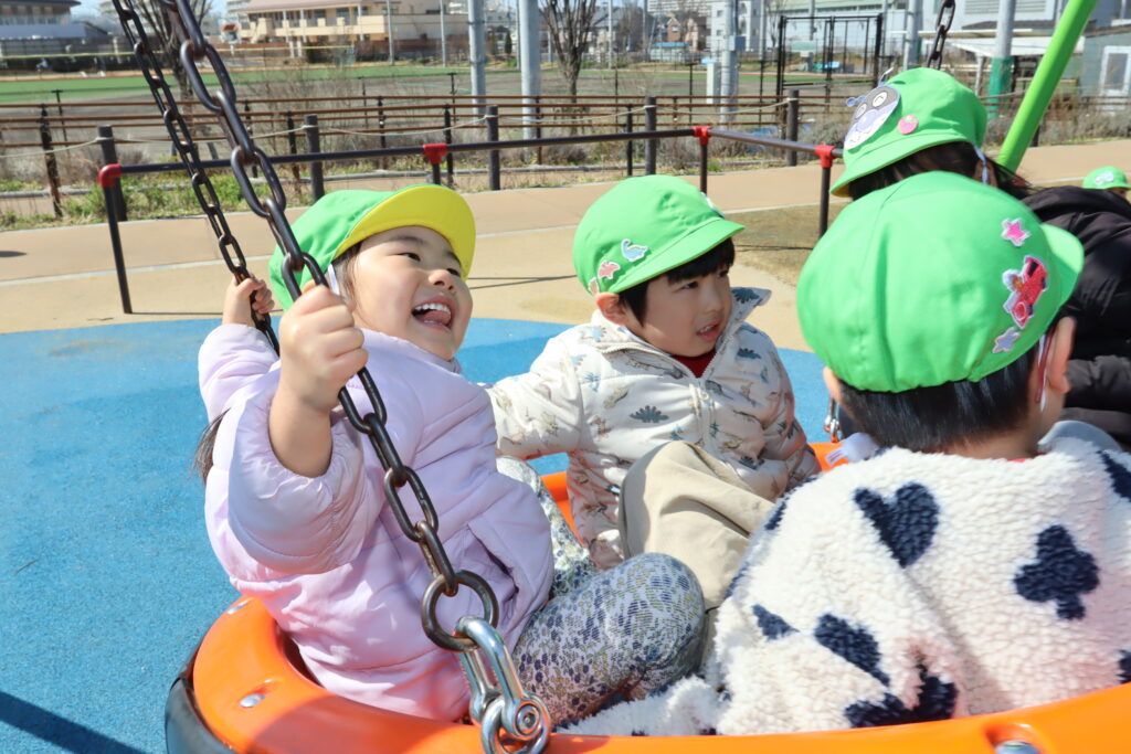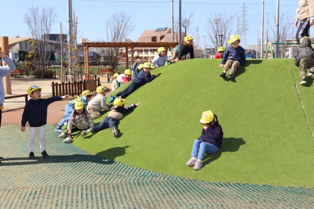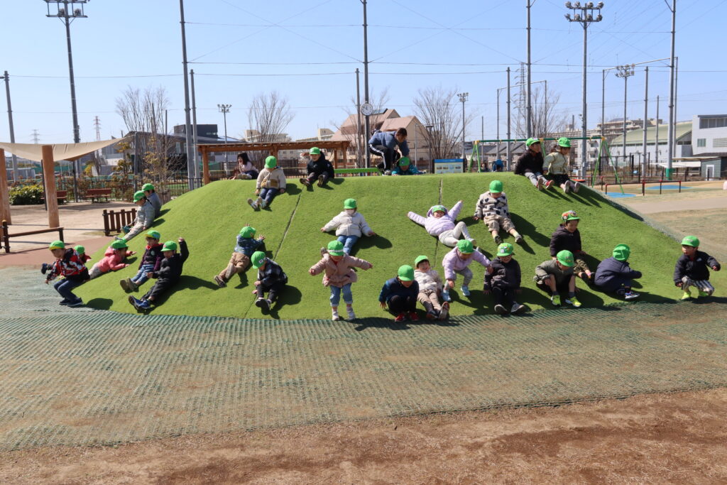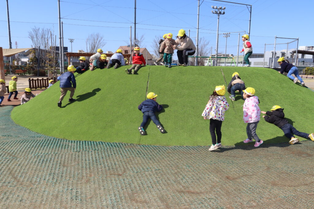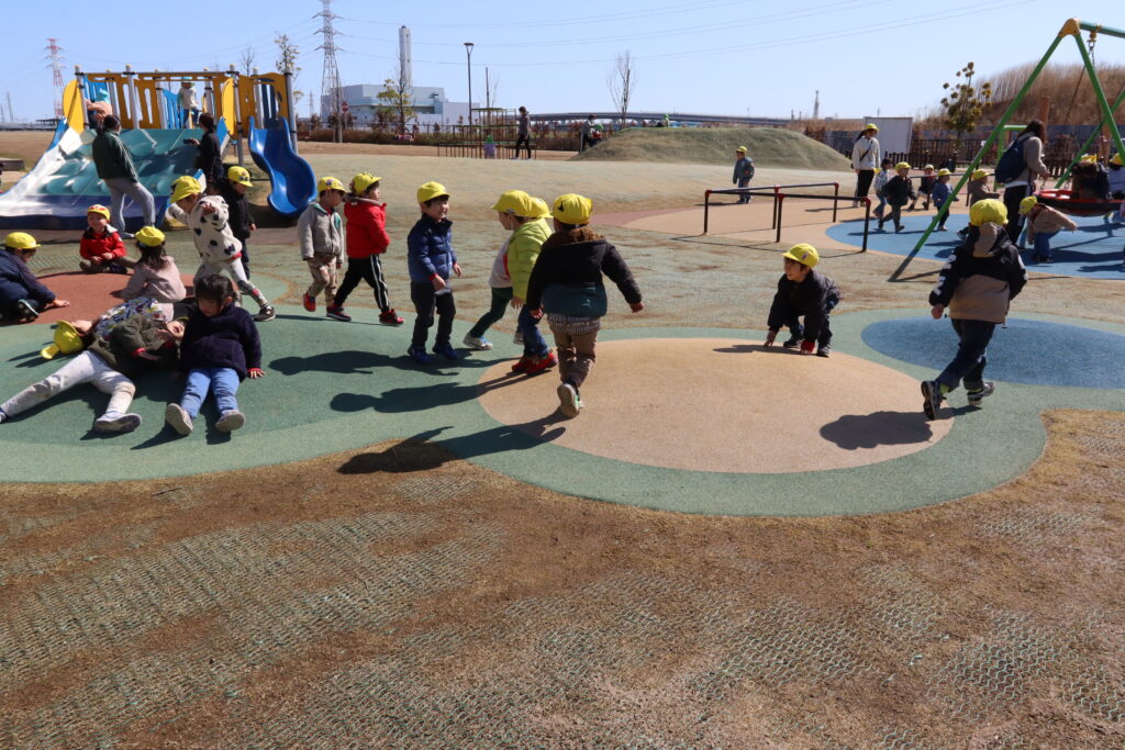 宮久保NOW 3月の園生活(5日 年少児お別れ遠足) 2026.03.05 宮久保幼稚園3歳児年少の子ども達は、幼稚園バスに乗って妙典のぴゅあぱーくへお別れ遠足に行きました。 強風でしたが、春のような暖かい天気のもと色々な遊具で遊び、一年間一緒に生活したクラスのみんなで、楽しい一日を過ごしました。
