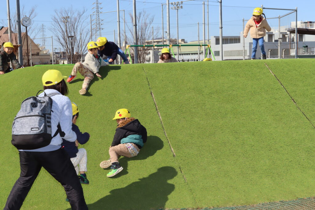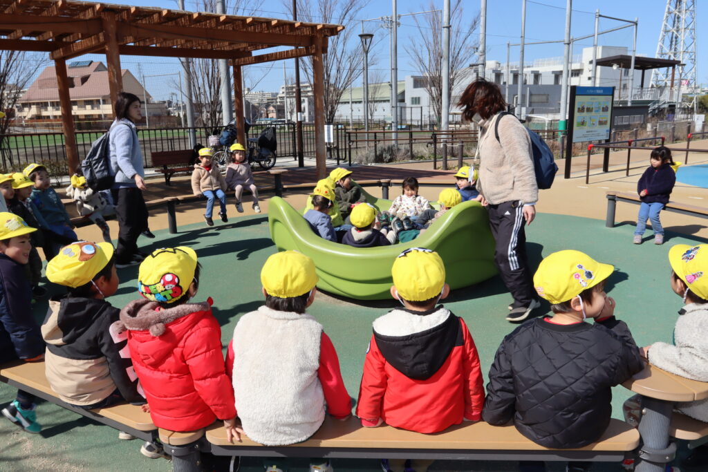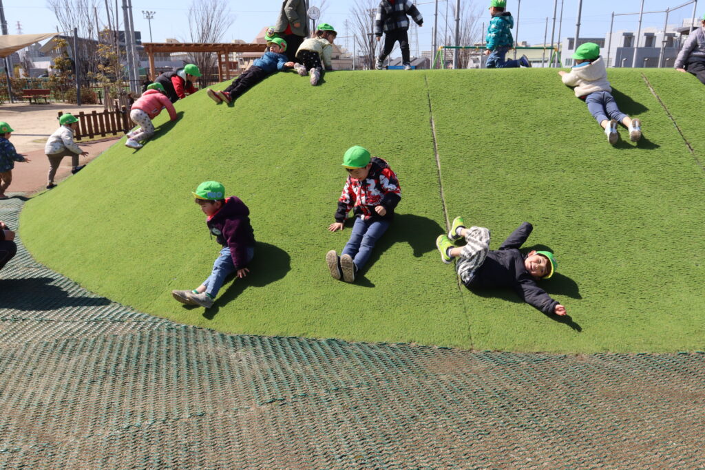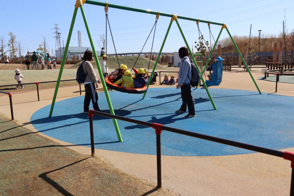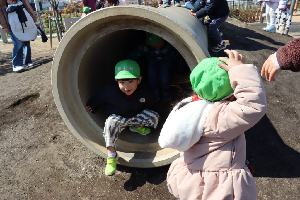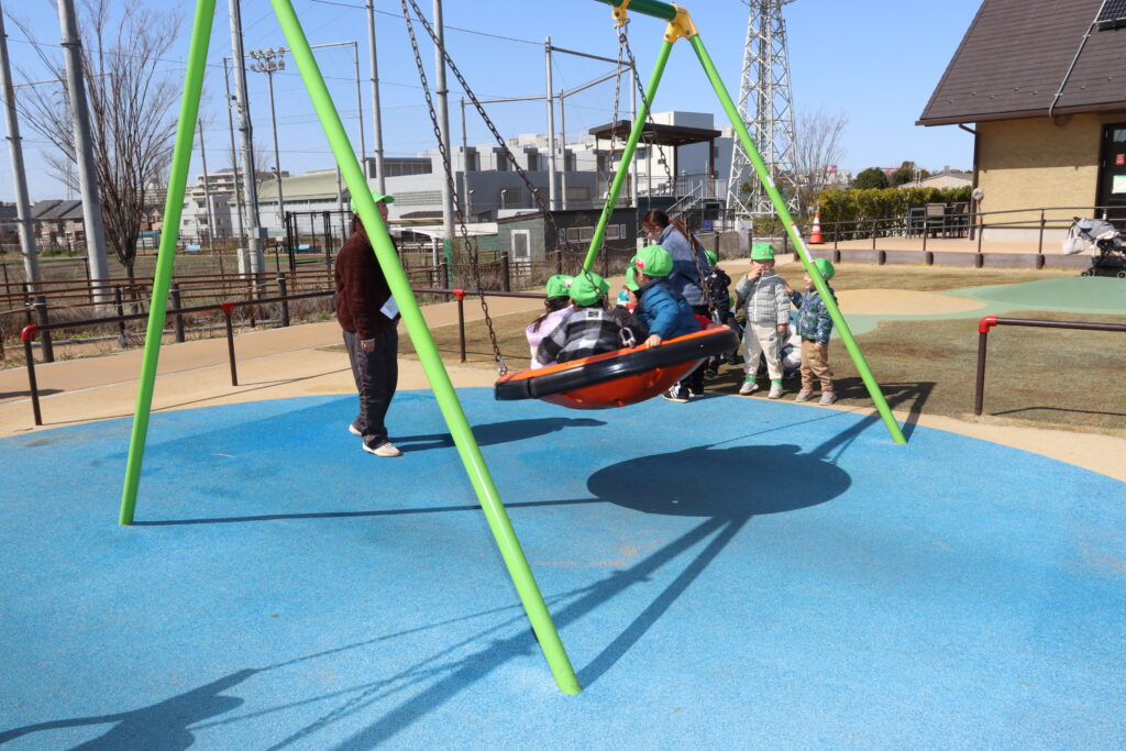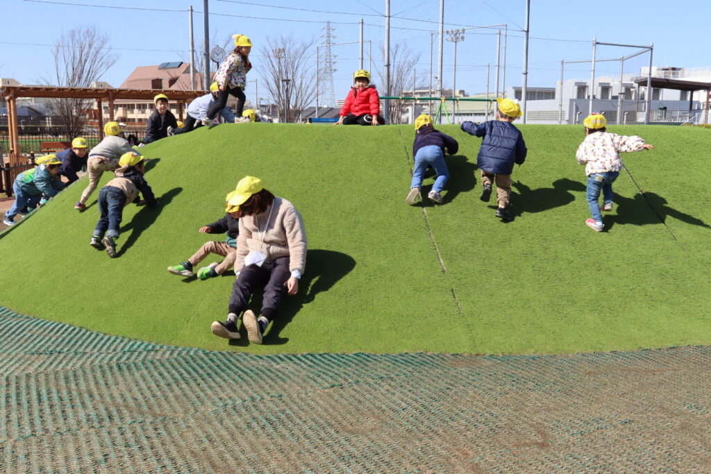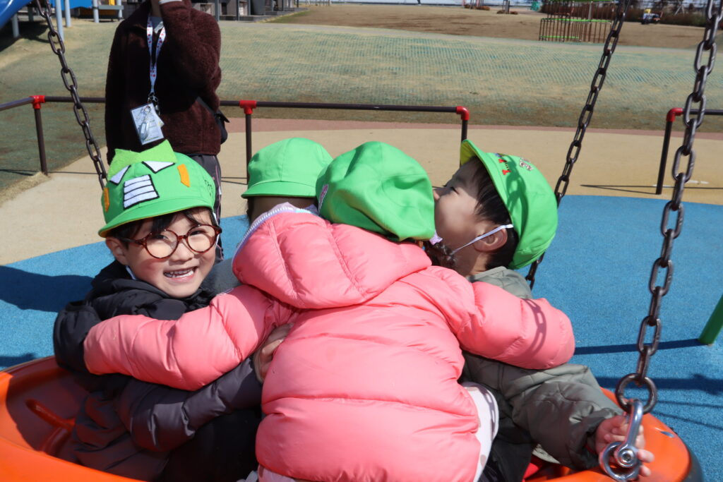 宮久保NOW 3月の園生活(5日 年少児お別れ遠足) 2026.03.05 宮久保幼稚園3歳児年少の子ども達は、幼稚園バスに乗って妙典のぴゅあぱーくへお別れ遠足に行きました。 強風でしたが、春のような暖かい天気のもと色々な遊具で遊び、一年間一緒に生活したクラスのみんなで、楽しい一日を過ごしました。