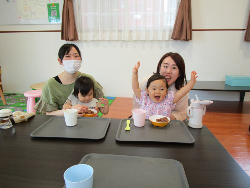 14日(水)ピュアのおやつはココアの蒸しパン!ポロポロにしながらも、口いっぱい頬張る姿がとても可愛かったです😊