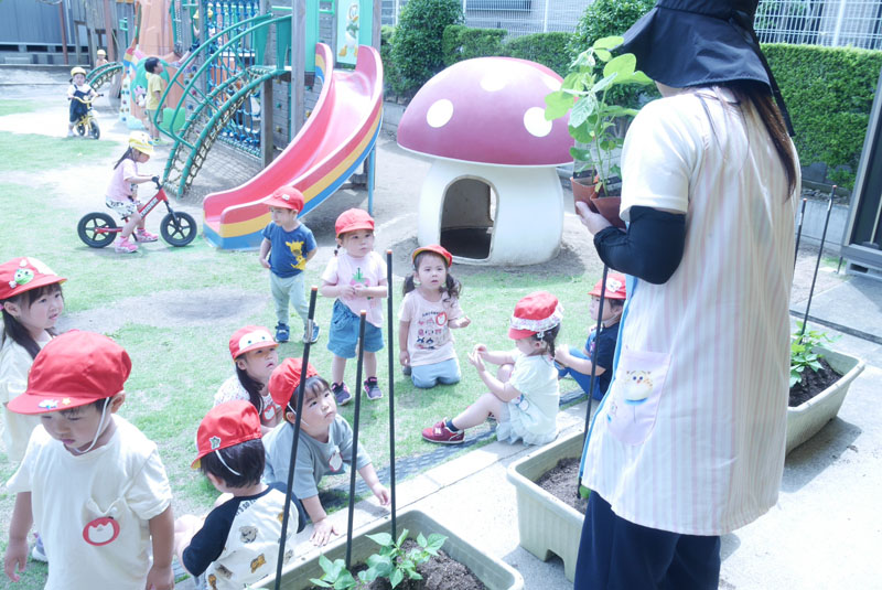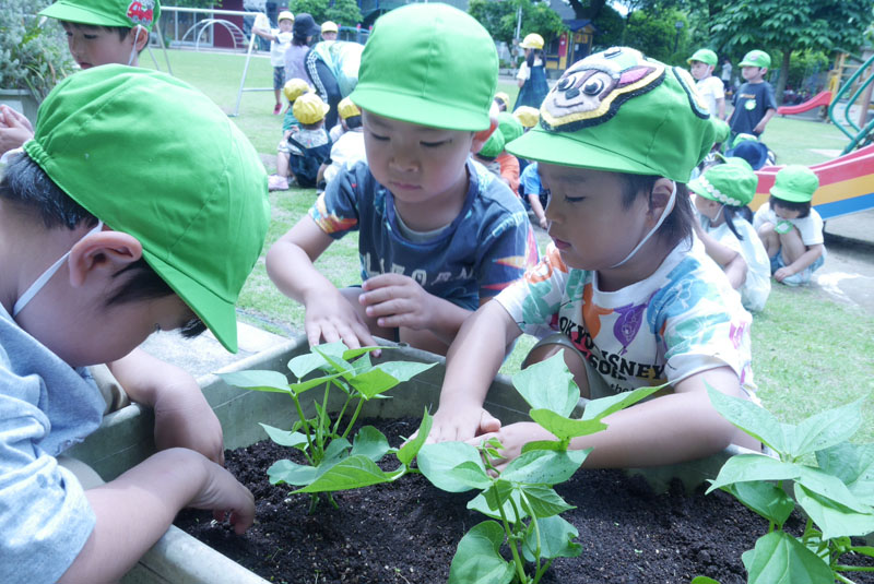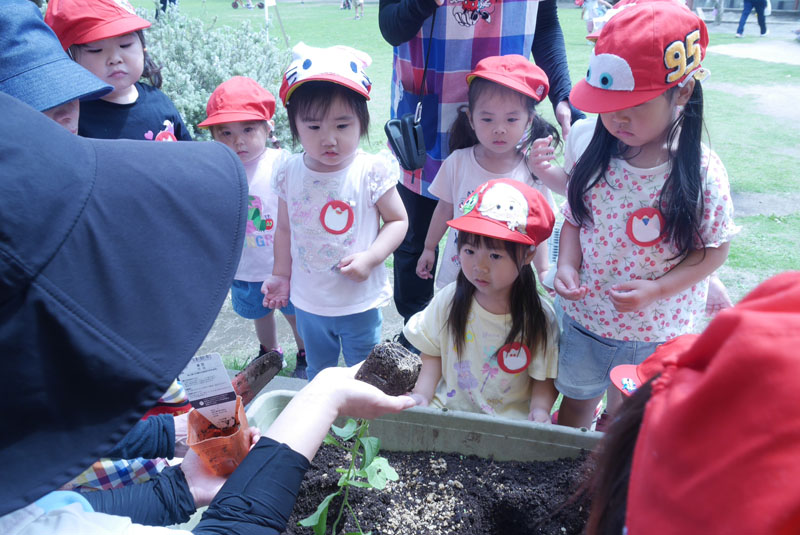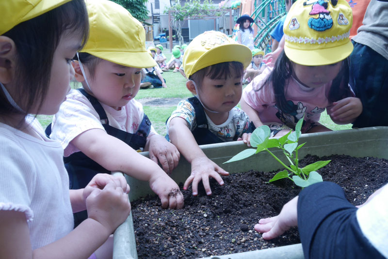 ちゅうりっぷ1組 宮久保NOW 宮久保子どもニュース 5月の園生活(22日 野菜の苗植え 年少組・ちゅうりっぷ組) 2025.05.22 5/22(木)に年少組とちゅうりっぷ組(2歳児クラス)は野菜の苗植えを行いました🌞枝豆やインゲンなど様々な種類の苗に興味津々!土を被せ、『大きくなりますように✨』とお願いをしました。夏の収穫を楽しみにする子ども達です♪