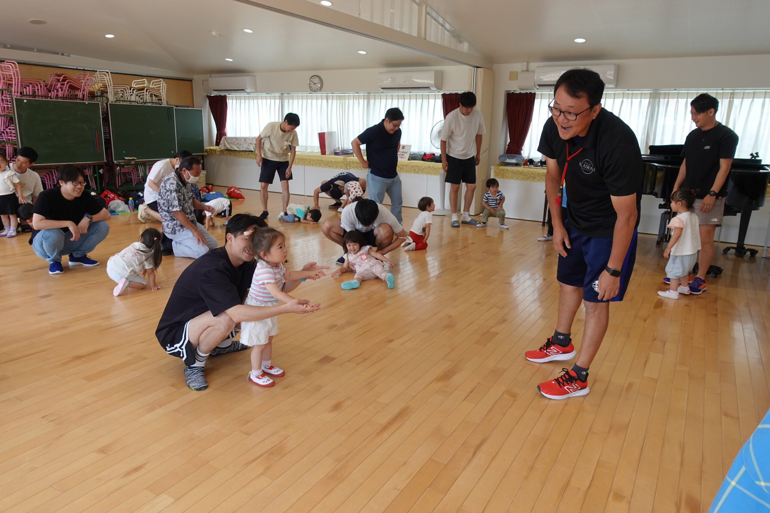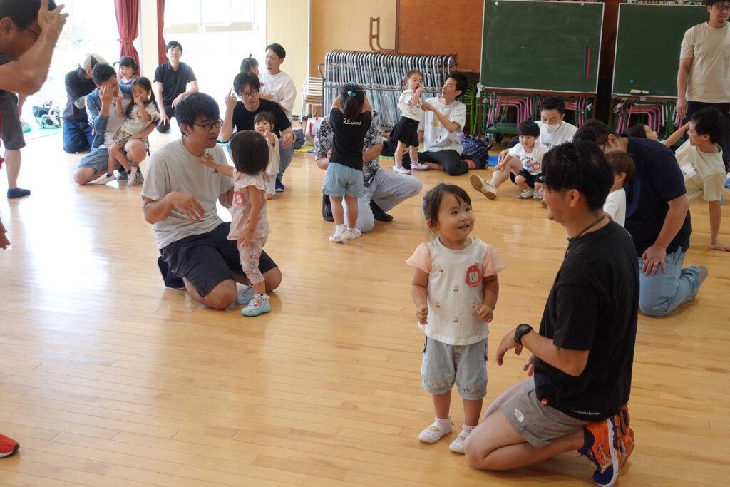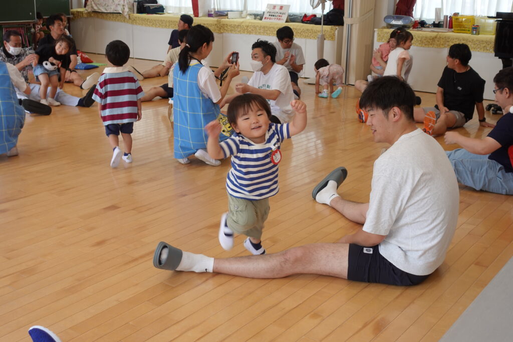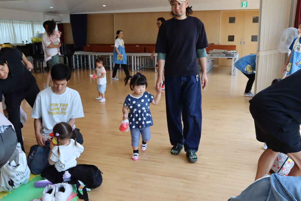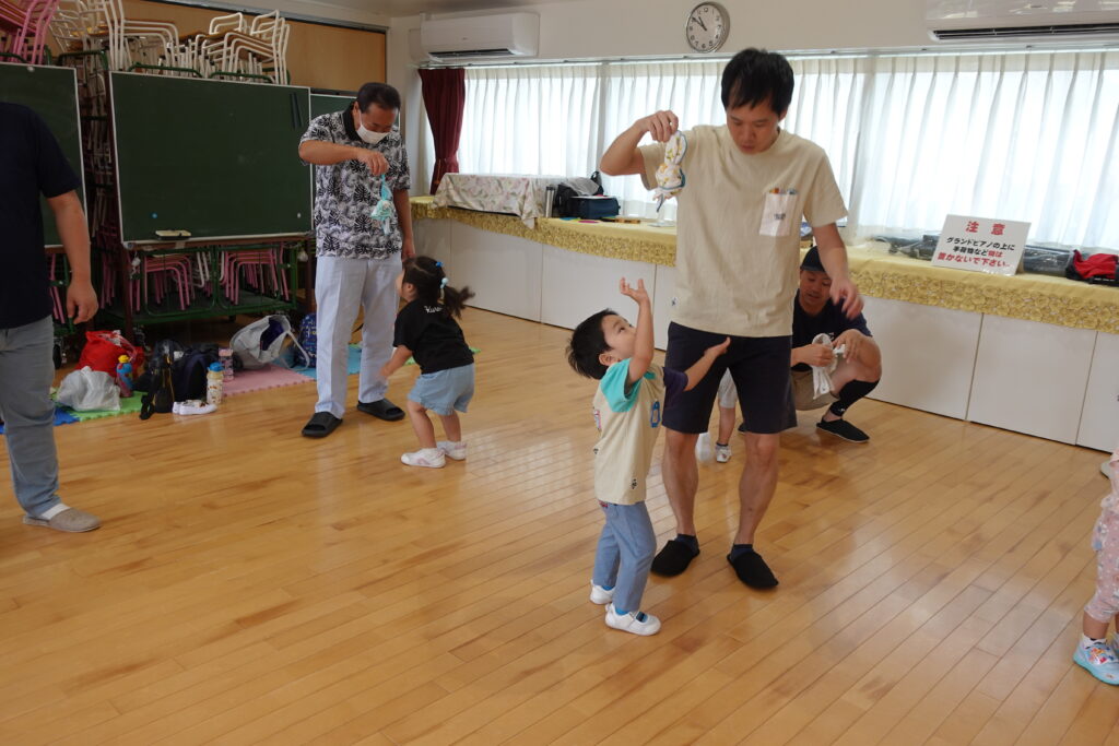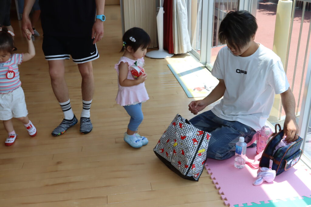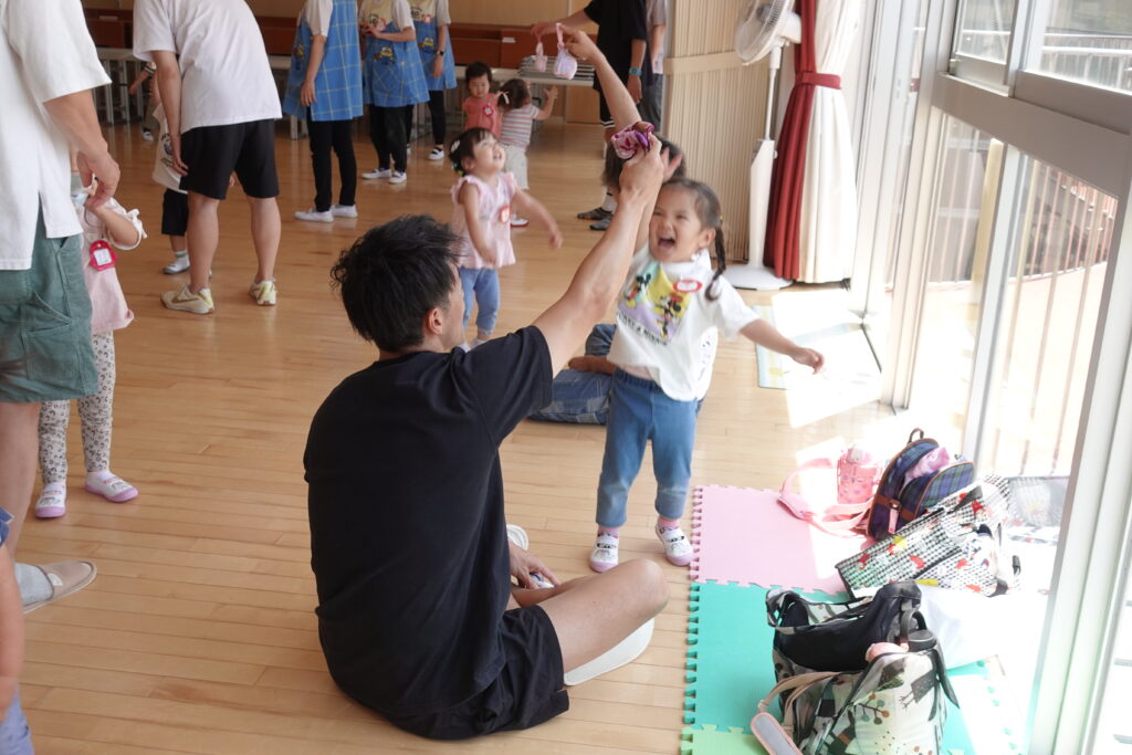 ちゅうりっぷ1組 ぱれっとレター 宮久保NOW 宮久保子どもニュース 6月の園生活(ぱれっと&ちゅうりっぷ お父さんday) 2025.06.07 6月7日(土)2歳児クラスのちゅうりっぷ組(満3歳児クラス)とぱれっと(親子登園クラス)合同のお父さんdayが行われました。 真夏のような天気でしたが、ホールでカワイ体操教室の竹倉先生と一緒に運動遊びを楽しみました。11月もありますので、楽しみにしていてください!