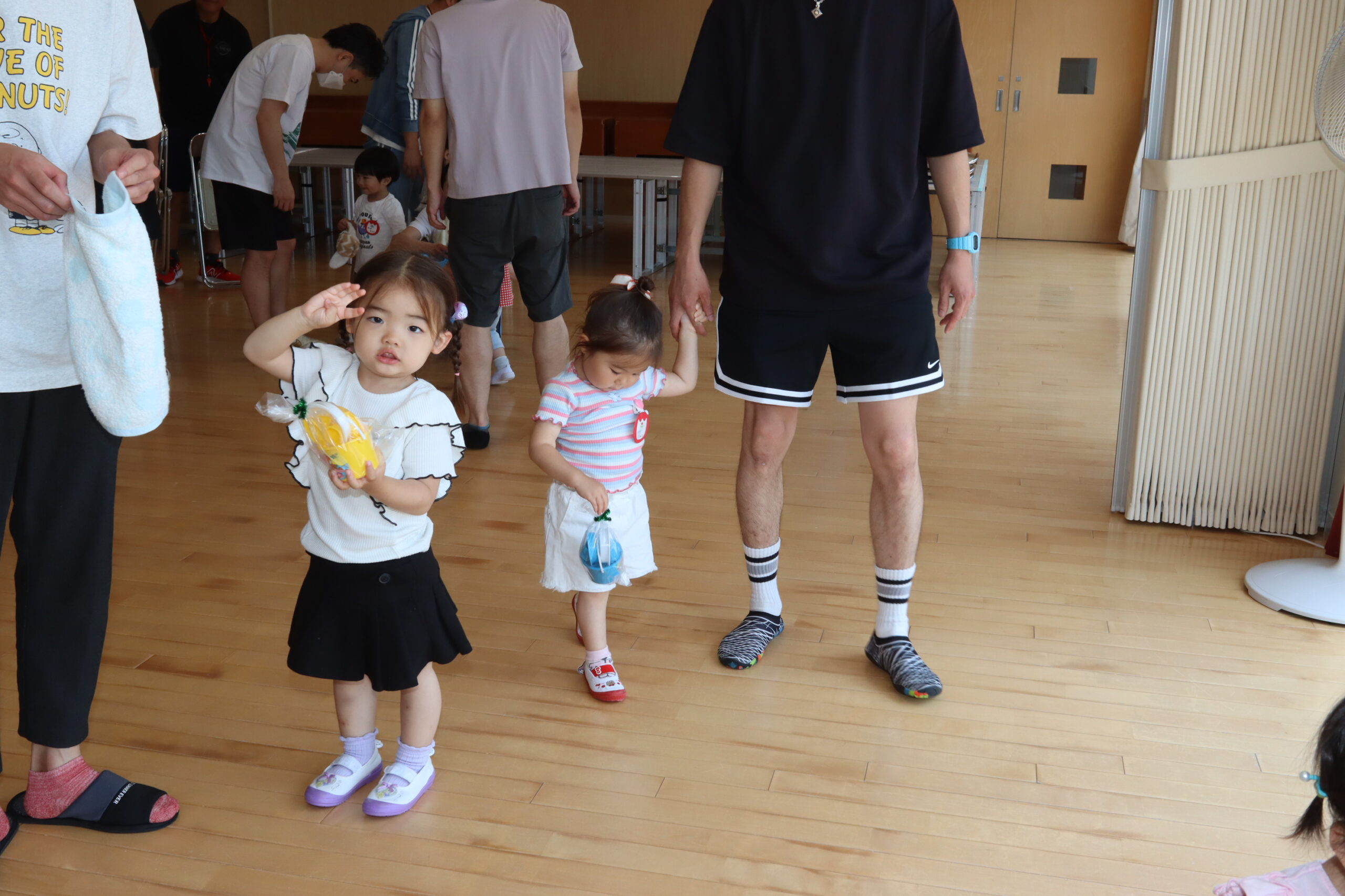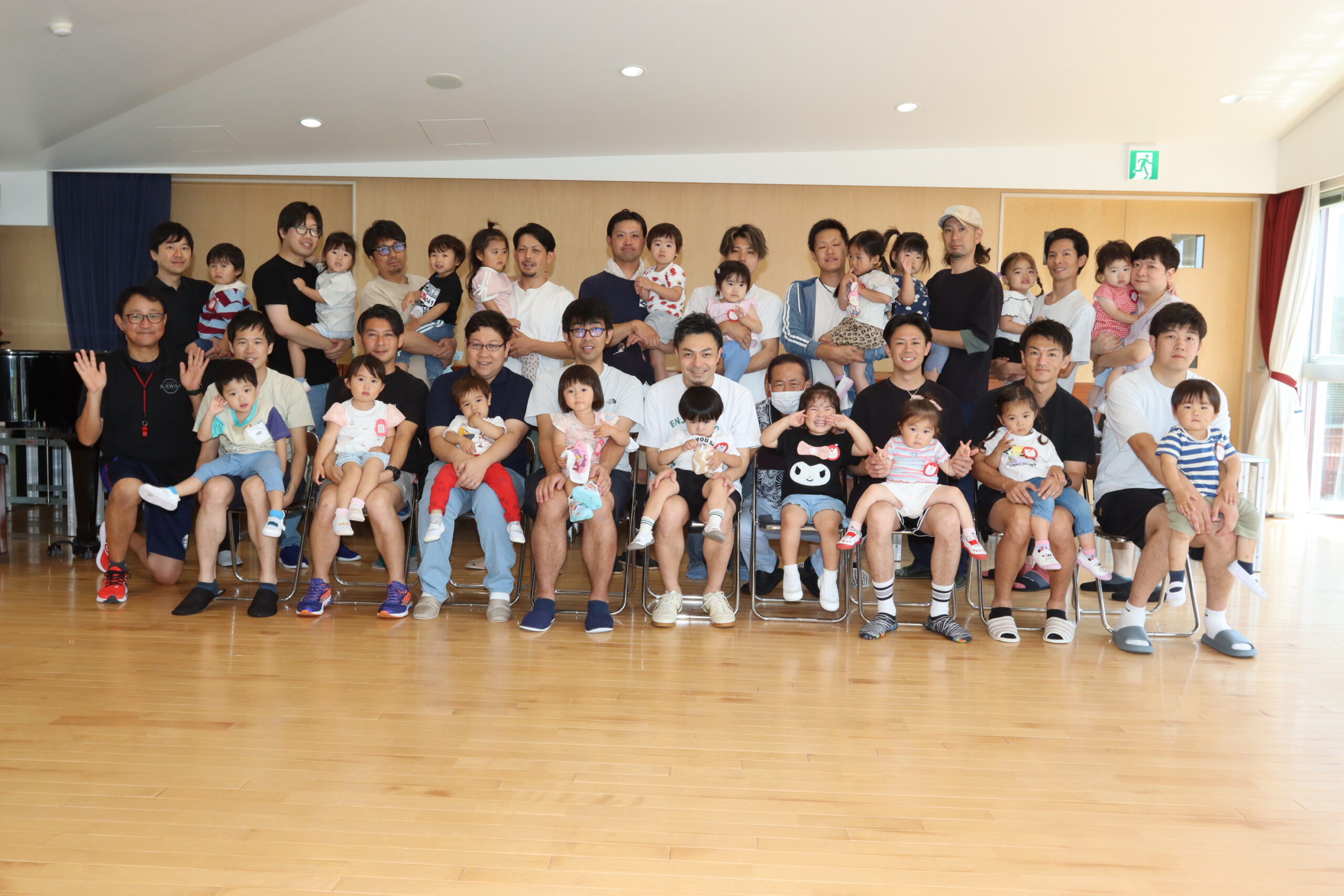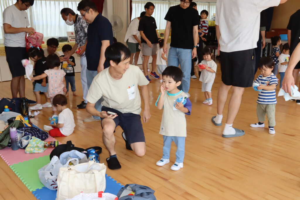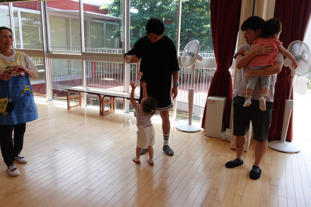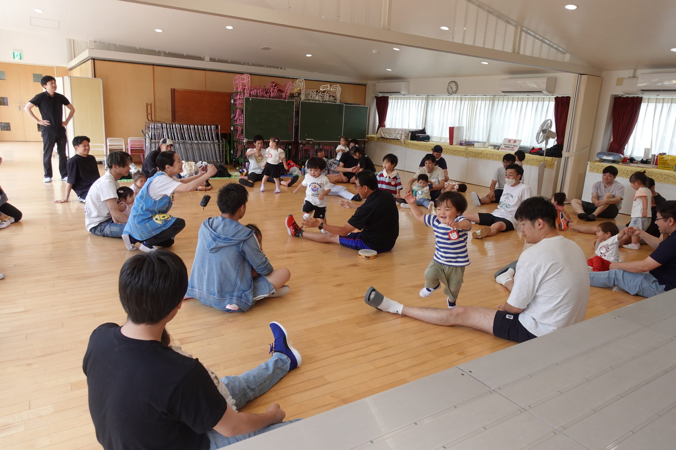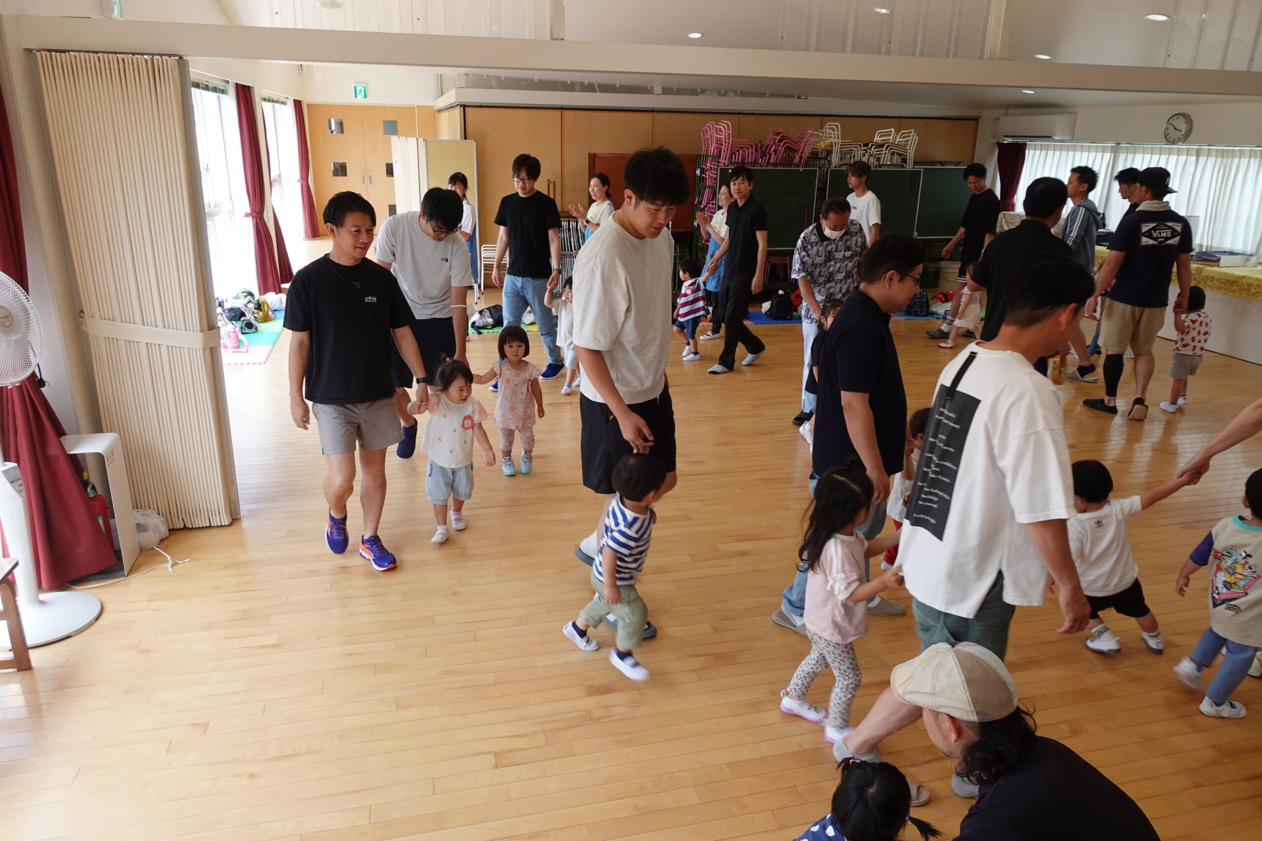 ちゅうりっぷ1組 ぱれっとレター 宮久保NOW 宮久保子どもニュース 6月の園生活(ぱれっと&ちゅうりっぷ お父さんday) 2025.06.07 6月7日(土)2歳児クラスのちゅうりっぷ組(満3歳児クラス)とぱれっと(親子登園クラス)合同のお父さんdayが行われました。 真夏のような天気でしたが、ホールでカワイ体操教室の竹倉先生と一緒に運動遊びを楽しみました。11月もありますので、楽しみにしていてください!