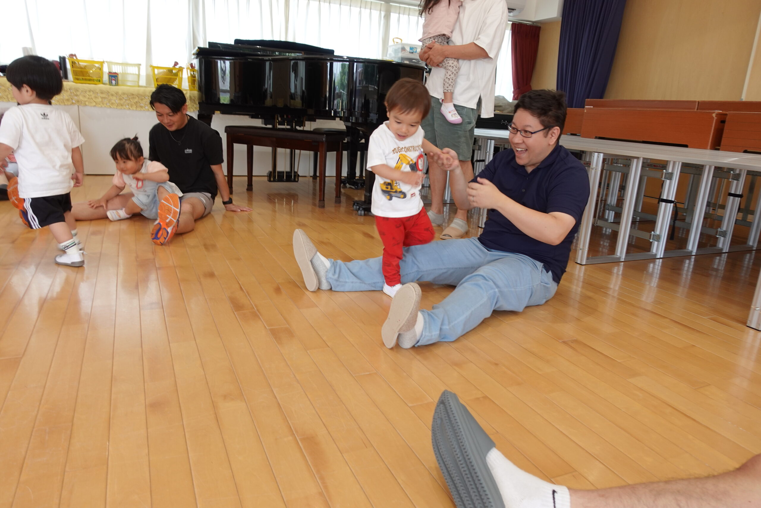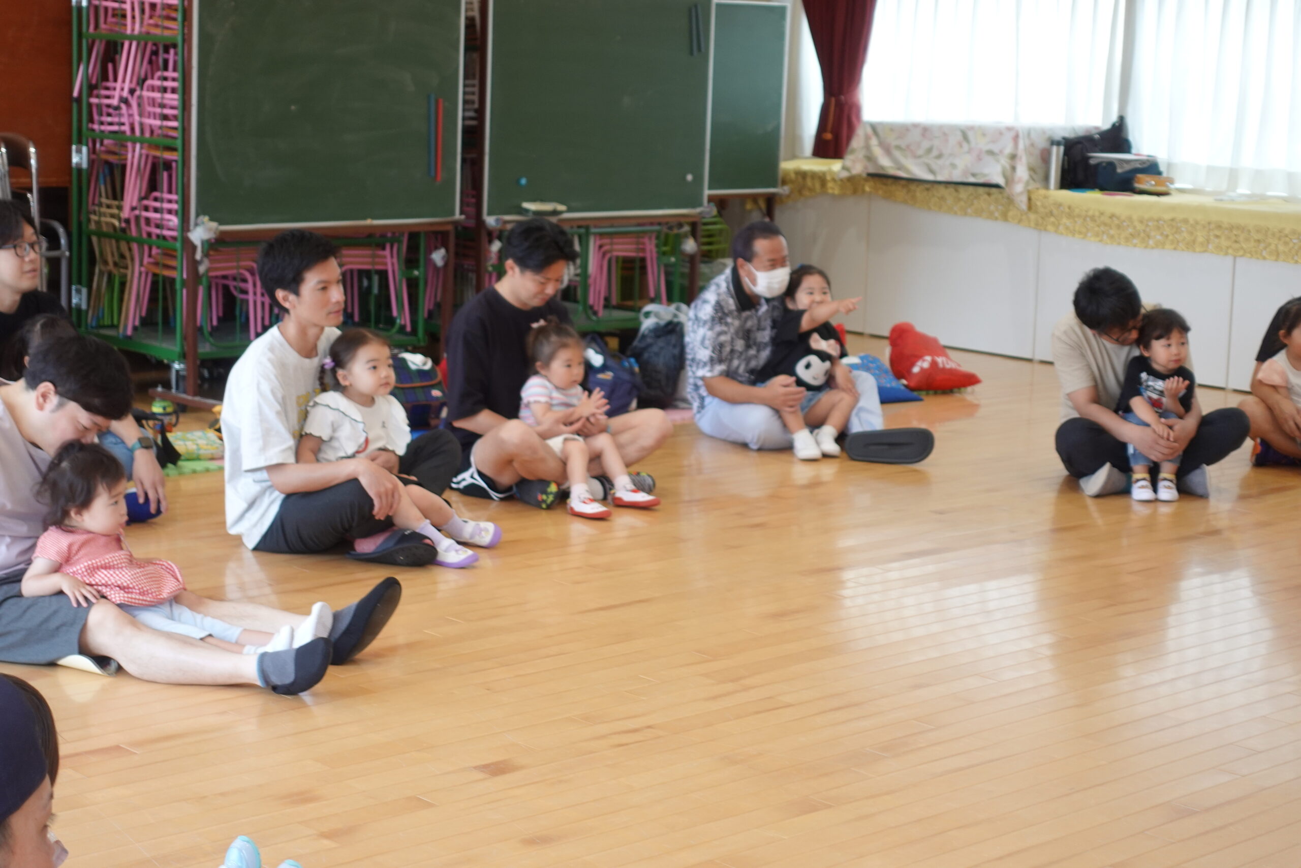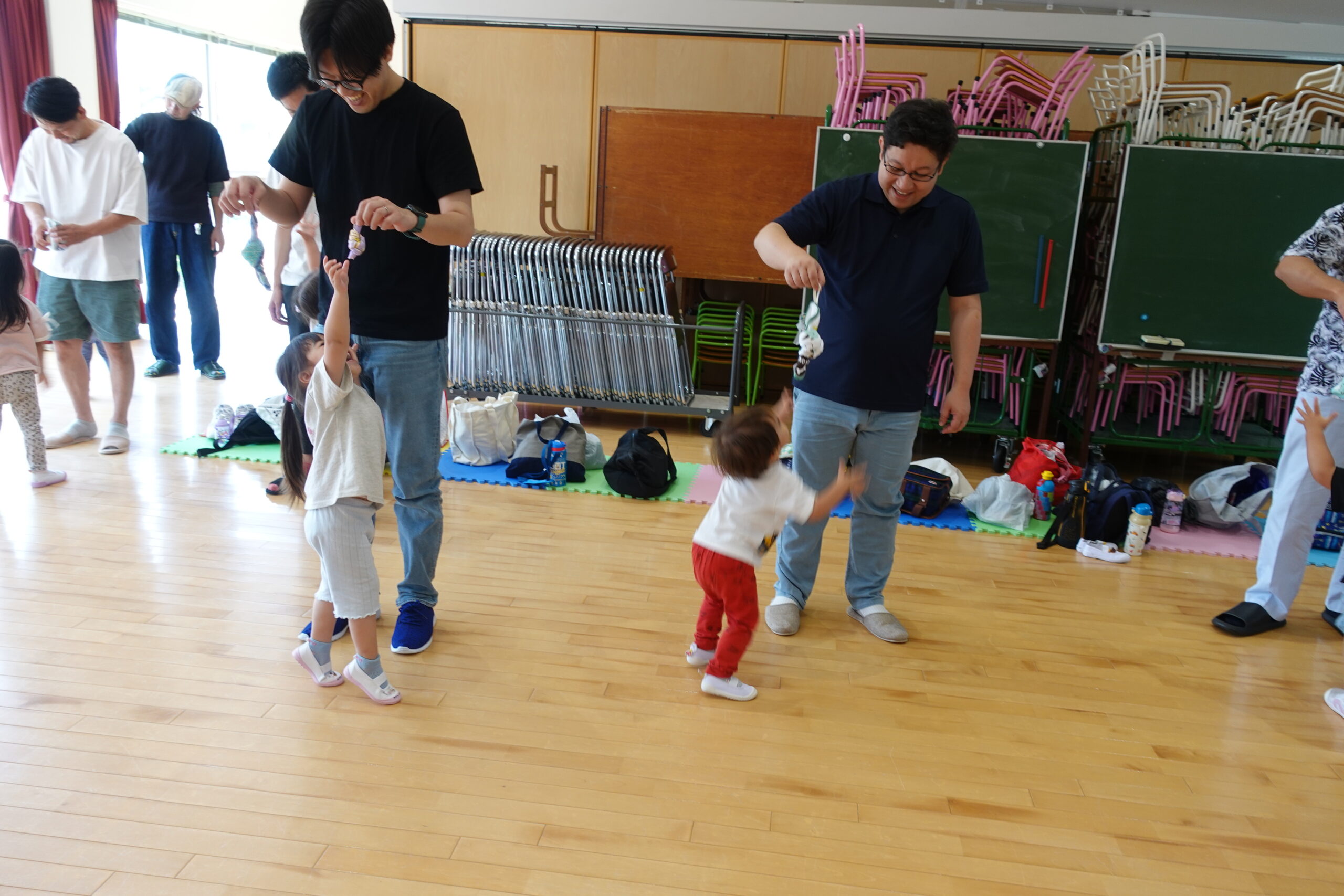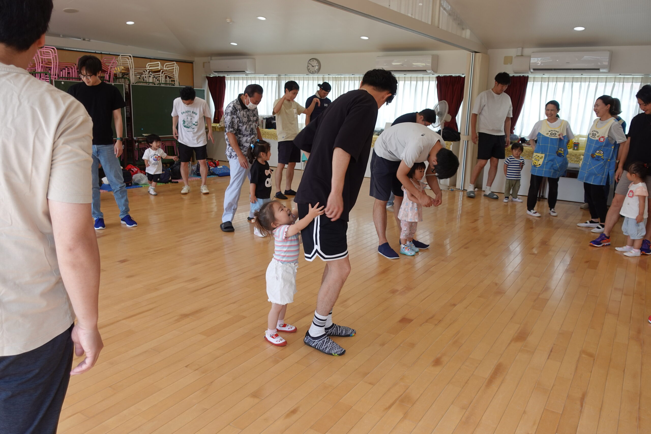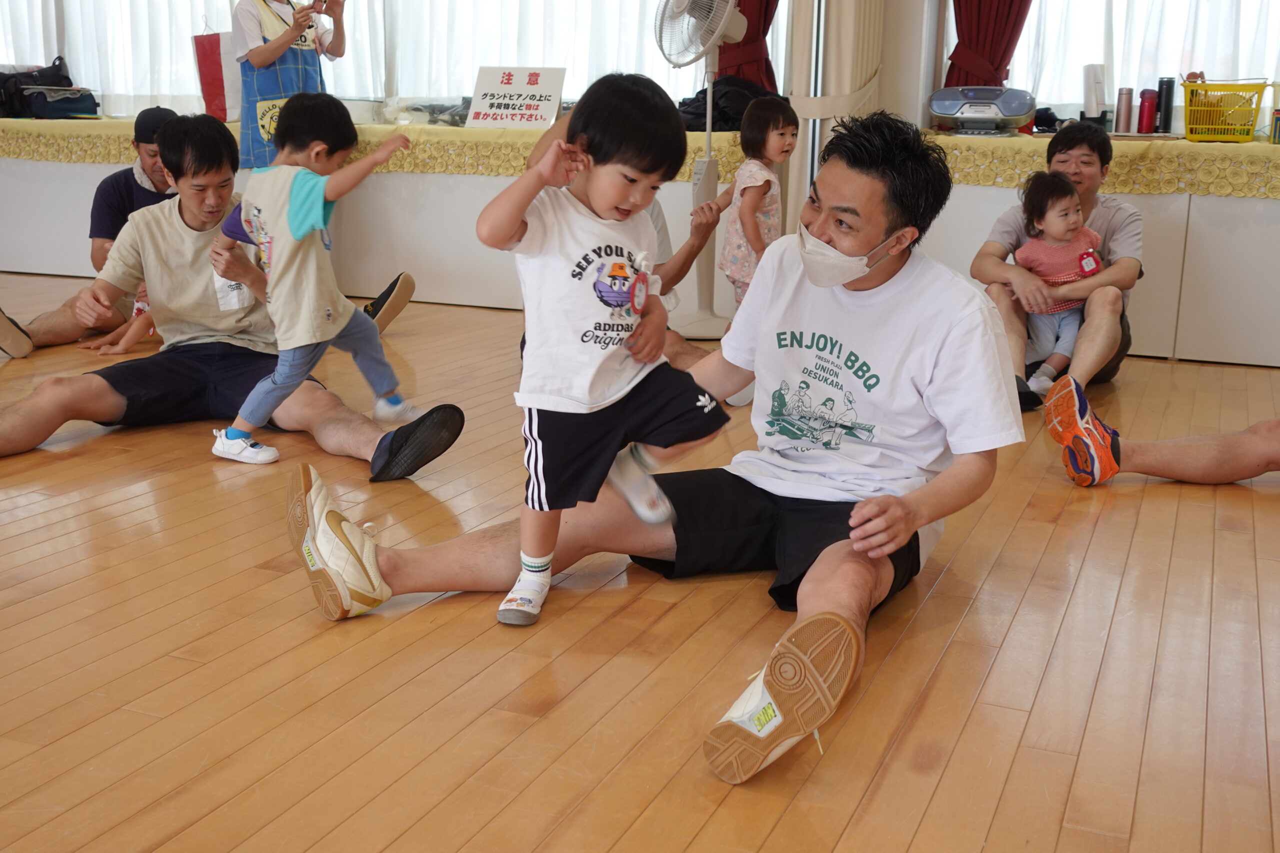 ちゅうりっぷ1組 ぱれっとレター 宮久保NOW 宮久保子どもニュース 6月の園生活(ぱれっと&ちゅうりっぷ お父さんday) 2025.06.07 6月7日(土)2歳児クラスのちゅうりっぷ組(満3歳児クラス)とぱれっと(親子登園クラス)合同のお父さんdayが行われました。 真夏のような天気でしたが、ホールでカワイ体操教室の竹倉先生と一緒に運動遊びを楽しみました。11月もありますので、楽しみにしていてください!