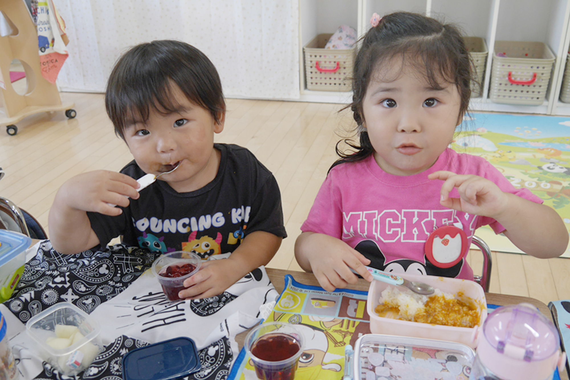 ちゅうりっぷ1組 宮久保NOW 宮久保子どもニュース 9月の園生活(2学期のカレー) 2025.09.03 9月3日(水)は2学期のカレー昼食会がありました🍴 厳しい暑さの中、朝早くから作って下さった愛情たっぷりの幼稚園カレー😊 登園してきた子ども達も「いい匂い~♪」と言いながらワクワクして待っている姿が可愛らしかったです♡ プールや水遊びで沢山身体を動かした後のカレーは格別で、おかわりも沢山してくれた子ども達でした🎵 役員さん、美味しいカレーをありがとうございました!