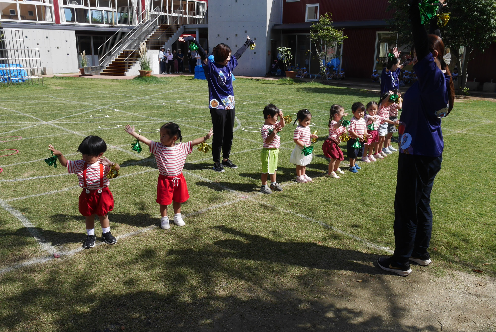 ちゅうりっぷ1組 宮久保NOW 宮久保子どもニュース 10月の園生活・運動会予行(2日) 2025.10.03 10月2日(木)運動会の予行練習が園庭で行われました。徒競走・リズム・クラス対抗リレー(年長児)・組体操を行った子ども達。たくさんの笑顔が見られて😊 11日の本番が楽しみです!