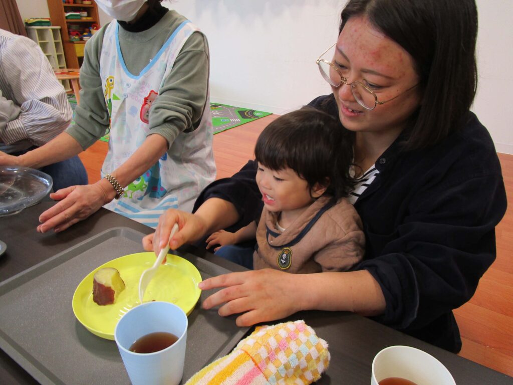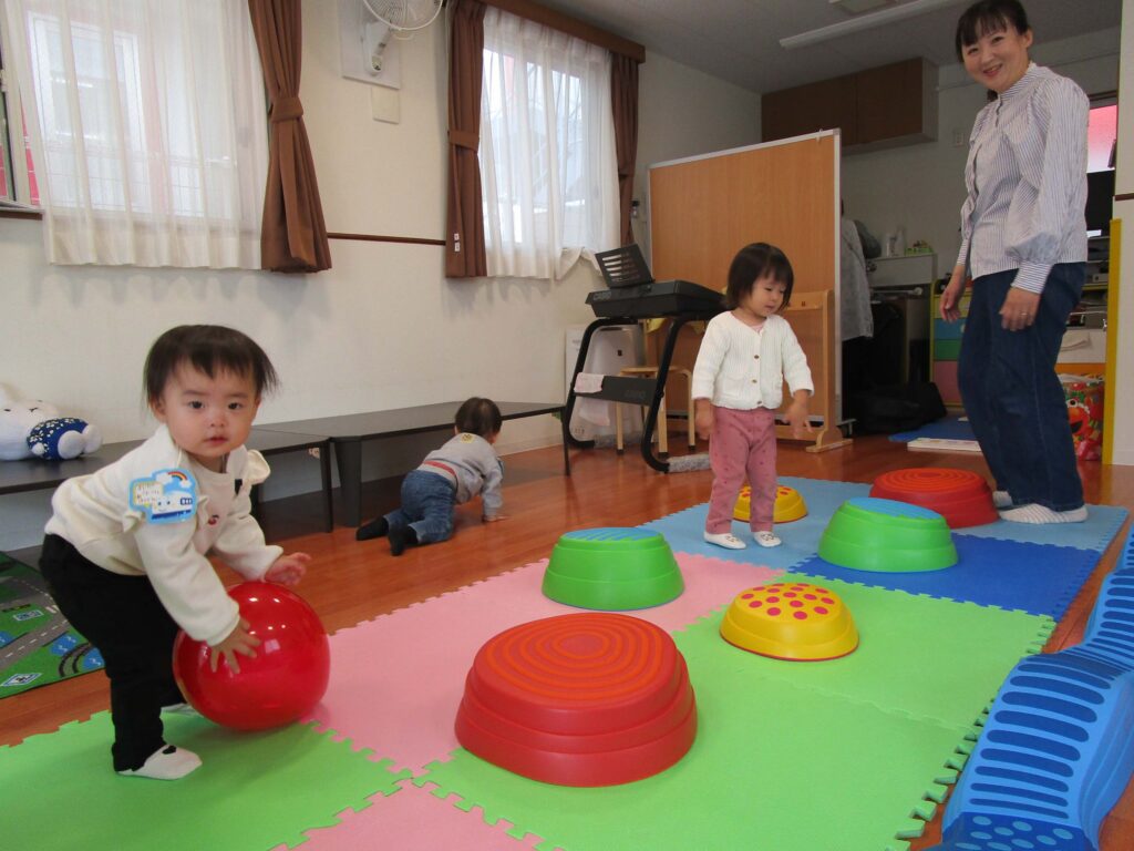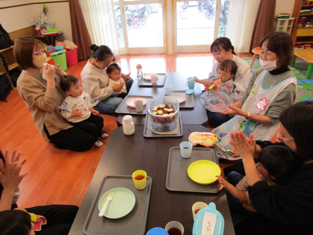 乳児部 子育てサロンぴゅあ 宮久保012 宮久保NOW 宮久保子どもニュース 子育てサロンピュア(体あそび) 11月5日 2025.11.05 今日(11月5日)のピュアは平均台を渡ったり飛び石を歩いたり、トンネルをくぐったりと沢山体を動かして遊びました。おやつに蒸したてのサツマイモを頬張る姿がとっても可愛かったです。