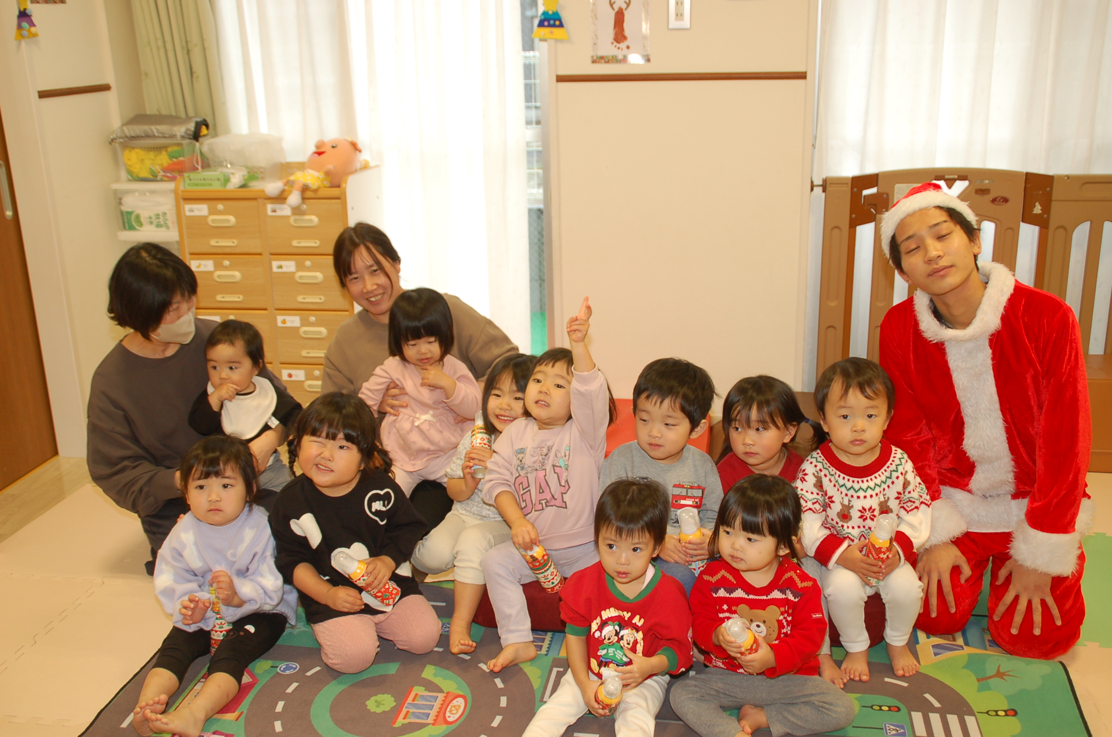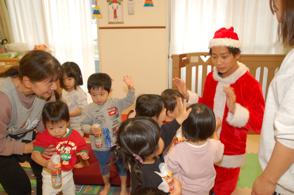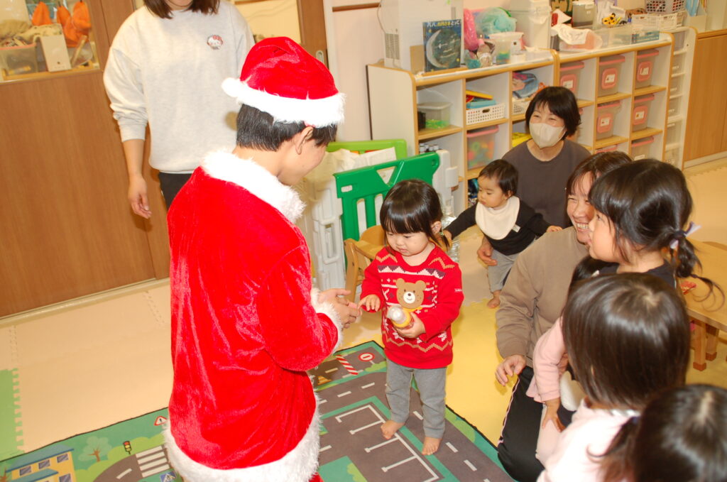 乳児部 子育てサロンぴゅあ 宮久保012 宮久保NOW 宮久保子どもニュース ~宮久保幼稚園012 12月4週目の園生活~ 2026.01.02 イケメンサンタが来てくれました🎶 おひげがないね~?サンタさん何できたの?コーヒーは好きですか?子ども達の質問に優しく答えてくれました😊