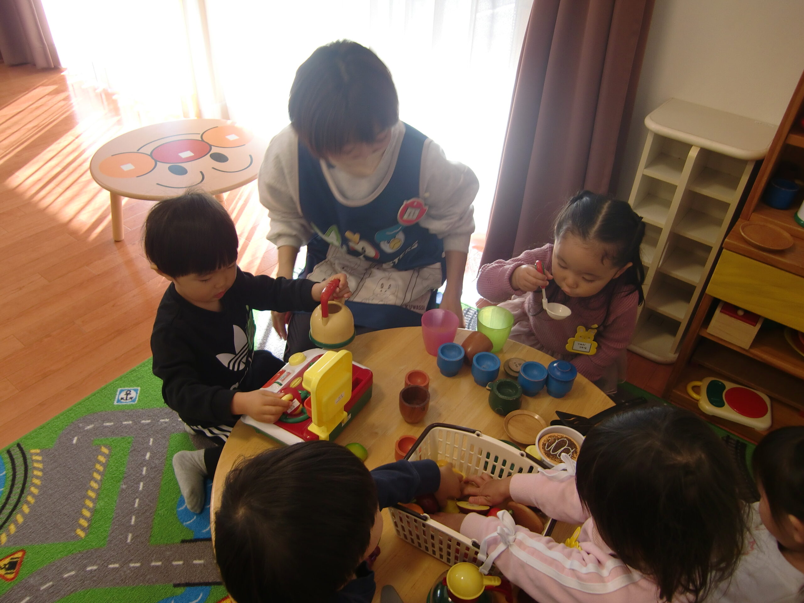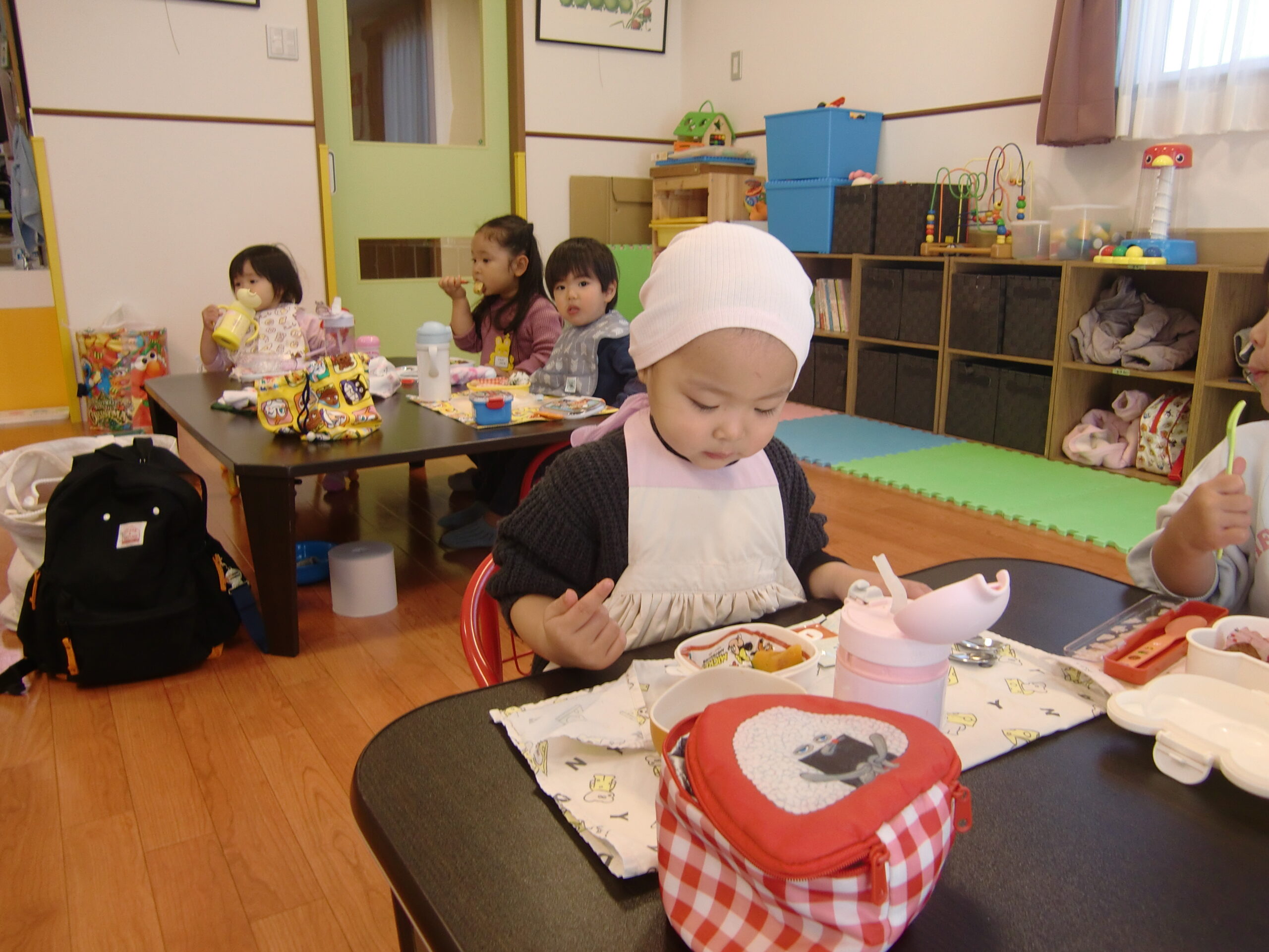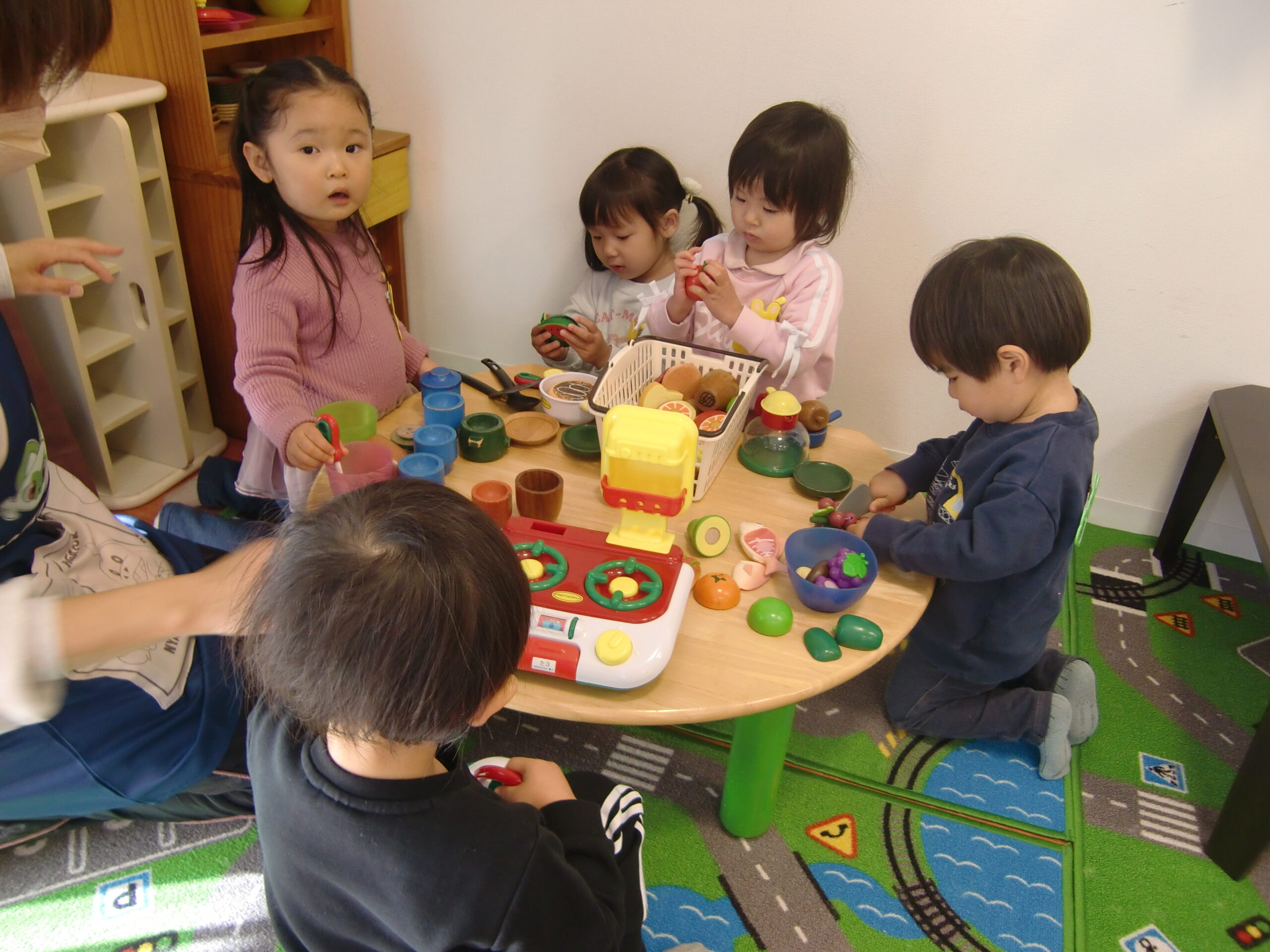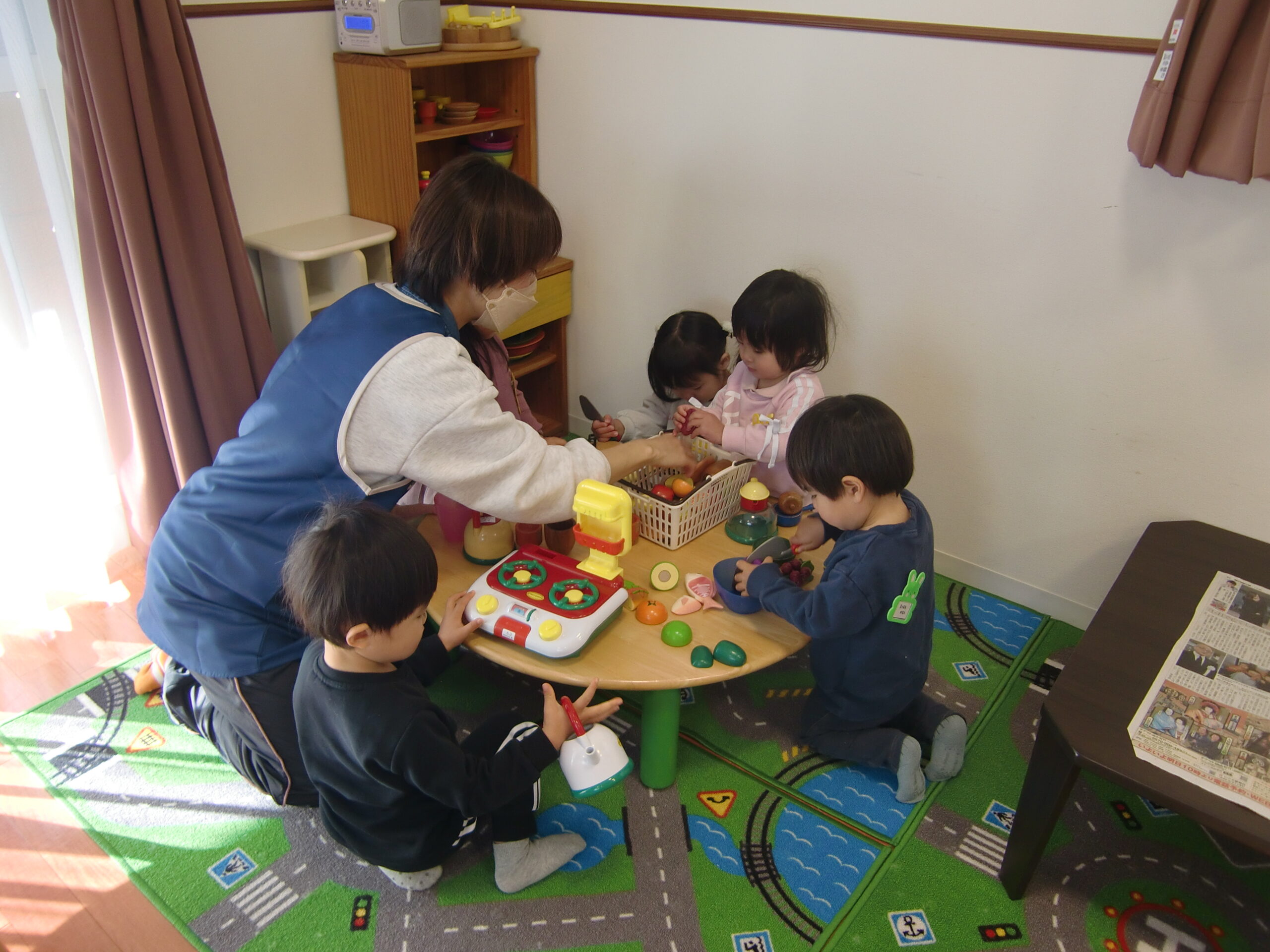 外でままごとで遊んだり、部屋でママが作ってくれたお弁当をみんなで食べたり、楽しい時間を過ごしました。