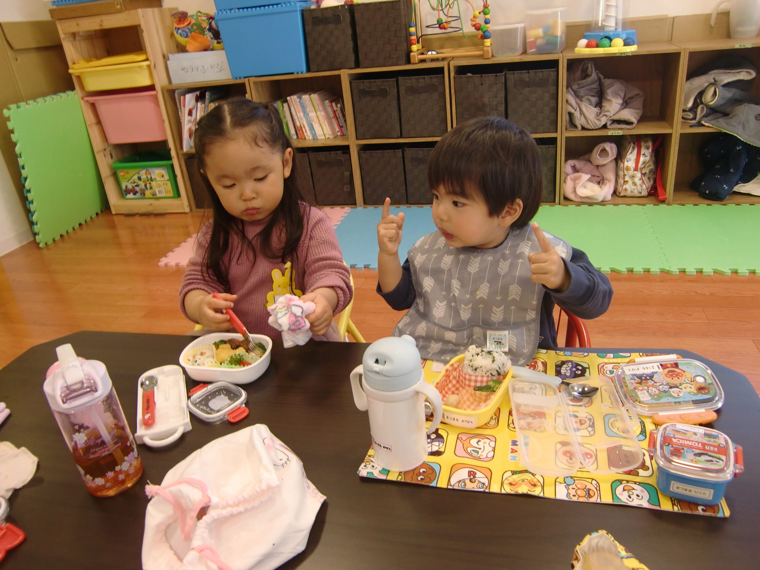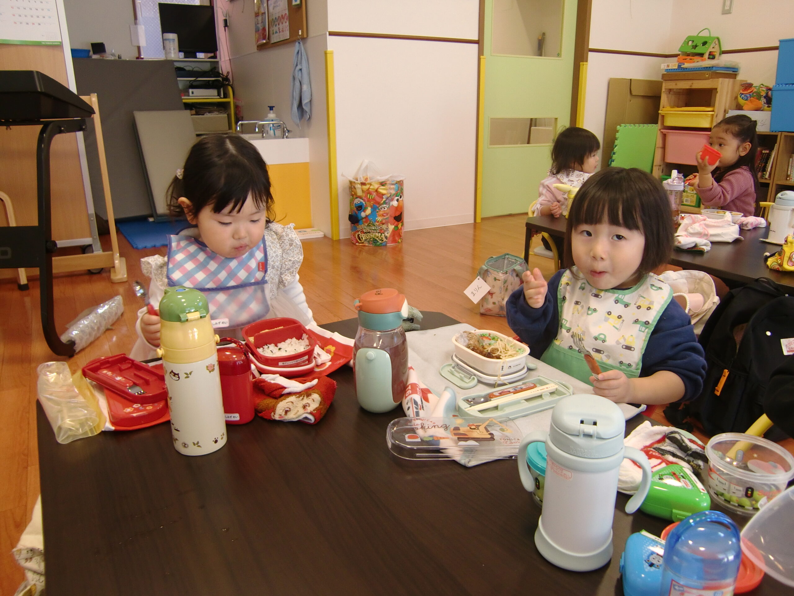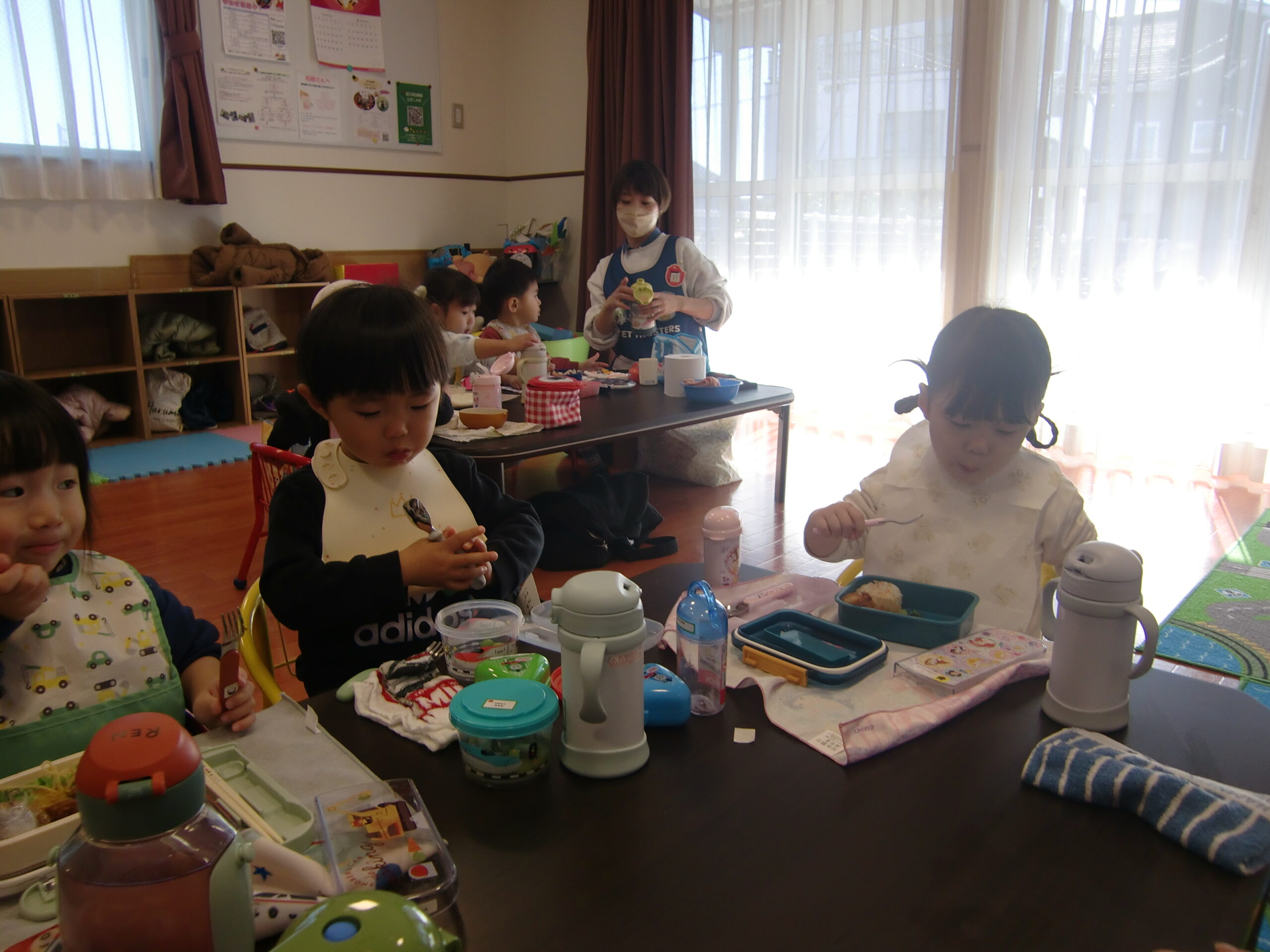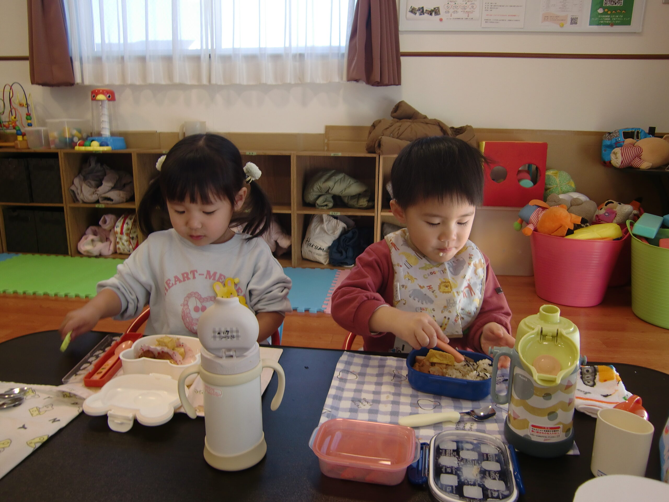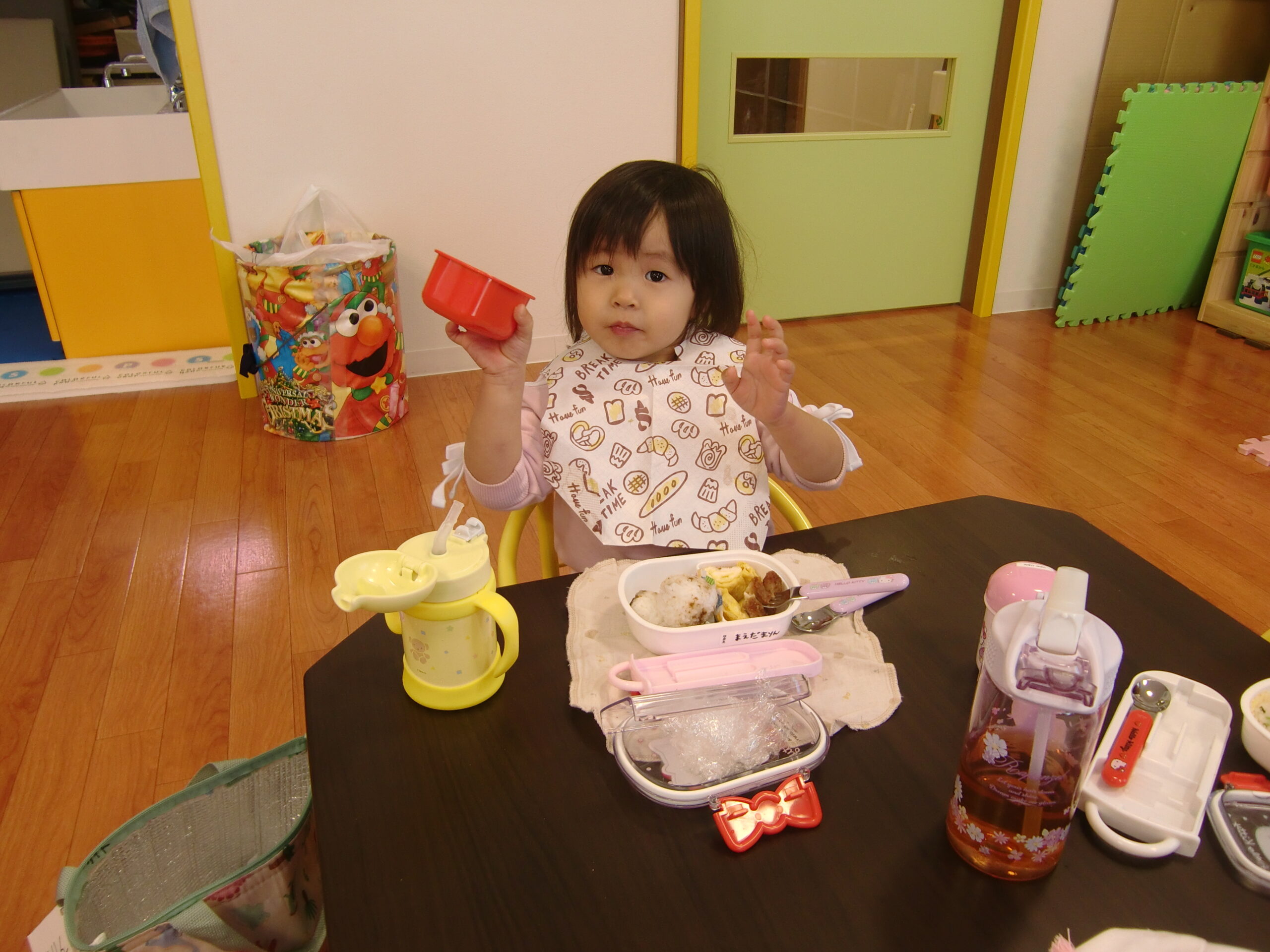 外でままごとで遊んだり、部屋でママが作ってくれたお弁当をみんなで食べたり、楽しい時間を過ごしました。