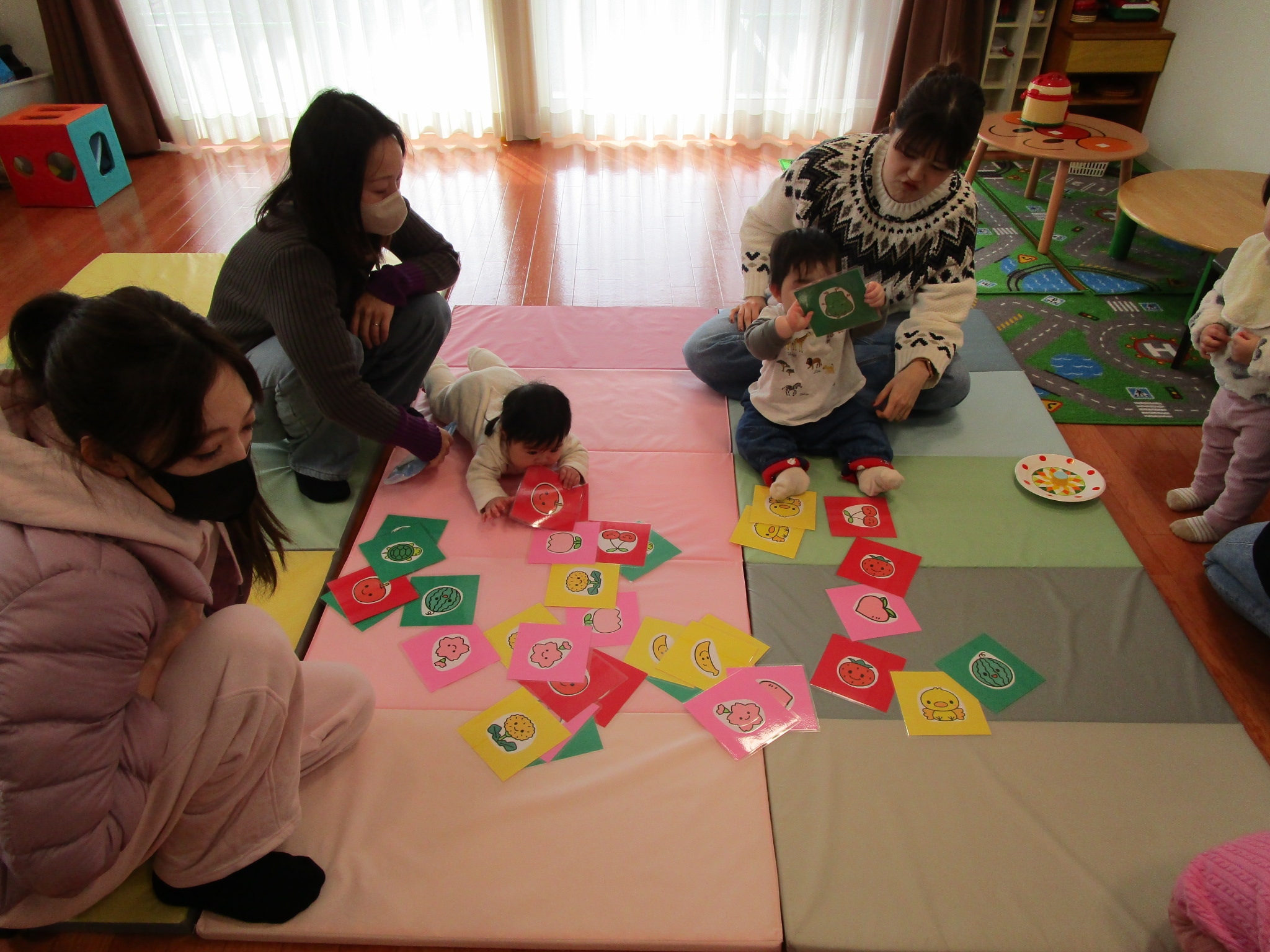 乳児部 子育てサロンぴゅあ 宮久保012 宮久保NOW 子育てサロンピュア(お正月遊び) 2026.01.21 今年もどうぞよろしくお願い致します。元気に沢山遊びましょうね😊コマを回したり、アンパンマンの福笑いをしたり、2週にわたってお正月遊びを楽しみました🎶