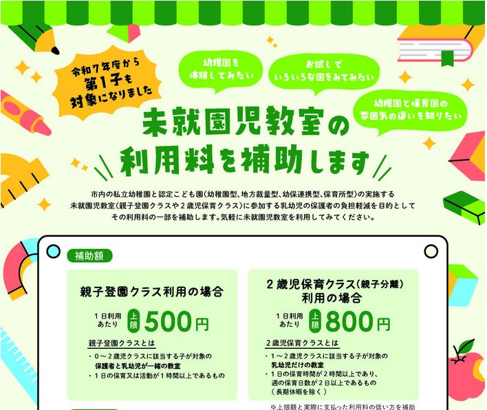 2025.10.02 私立幼稚園未就園児教室の補助申請について ちゅうりっぷ1組 はっぴい1組 はっぴい2組 ぱれっと ピュア・はっぴい・ちゅうりっぷ・ぱれっとの保護者の方は下記から市川市役所ホームページにアクセスして、補助金申請方法等をご確認下さい。 私立幼稚園の未就園児教室の補助について | 市川市公式Webサイト ※5-手続きのNO6補助金の交付の欄に「申請手引き」が掲載されています。 9月の園生活写真(6,184枚)と10月生まれ誕生児紹介 前の記事 第59回運動会のお知らせ 次の記事
