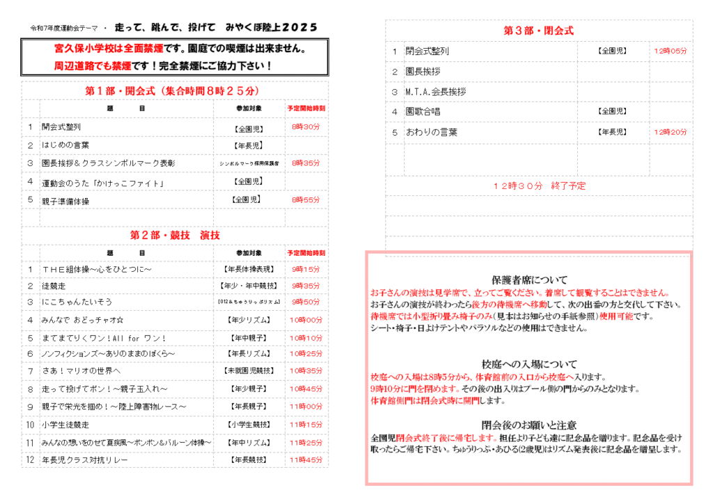 未就園児等の予定は下記のプログラムを参照して、予定時刻より15分程度は早く来場して下さい。