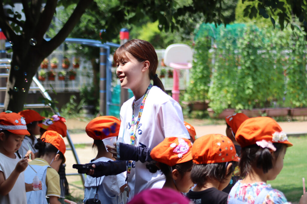 就職活動では4つの園を見学しましたが、宮久保幼稚園の先生たちの明るく優しい雰囲気と、子どもたちが楽しそうに過ごしている様子に惹かれました。特に、先生が子ども一人ひとりと丁寧に関わっている姿が印象的で、「こんなふうに保育がしたい」と思ったのが、ここで働こうと決めた理由です。実際に働き始めてからも、見学のときに感じた通り、先輩方はとても優しくて、今でも気軽に話せる関係が続いています。
