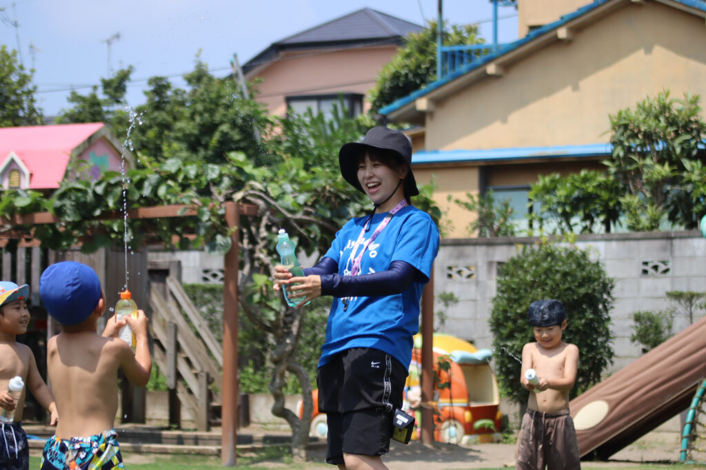 宮久保幼稚園の魅力は、子どもと一緒に本気で遊べること。水遊びや泥んこ遊びなども全力で楽しみながら、子どもたちと同じ目線で日々を過ごします。保護者の方々もあたたかく、先生たち同士のコミュニケーションもとりやすい環境です。子どもたちや先生方と一緒にたくさんのことを経験して、自分自身も成長したい――そんな想いを持っている方には、ぴったりの園だと思います。ぜひ一度、園の雰囲気を見に来てください!