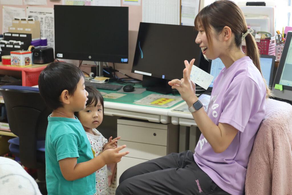 やっぱり一番のやりがいは、子どもたちの成長を間近で感じられること。言葉が少なかった子が、先生の名前を覚えて呼んでくれたり、できなかったことができるようになったり。その一つ一つが、自分にとって大きな喜びになっています。目の前の子どもたちの変化に気づけることが、先生という仕事の醍醐味なんだなと日々感じています。