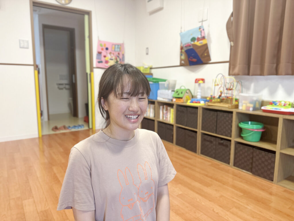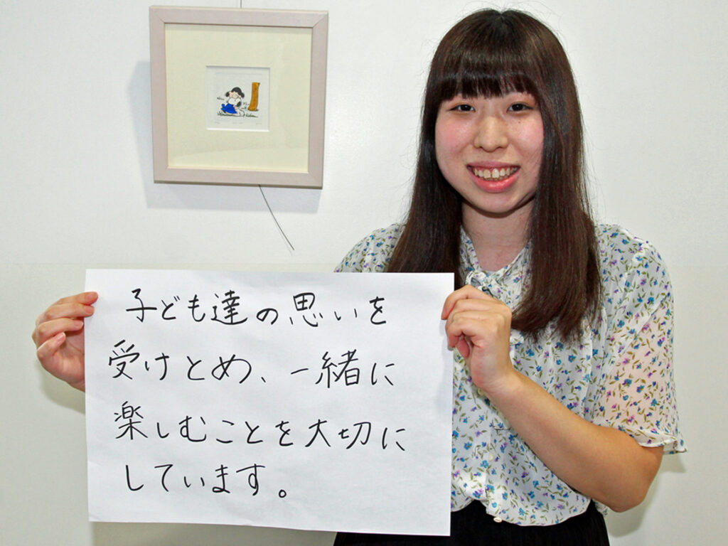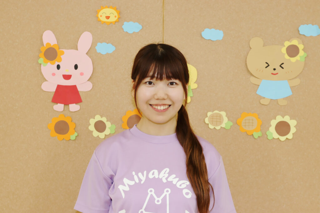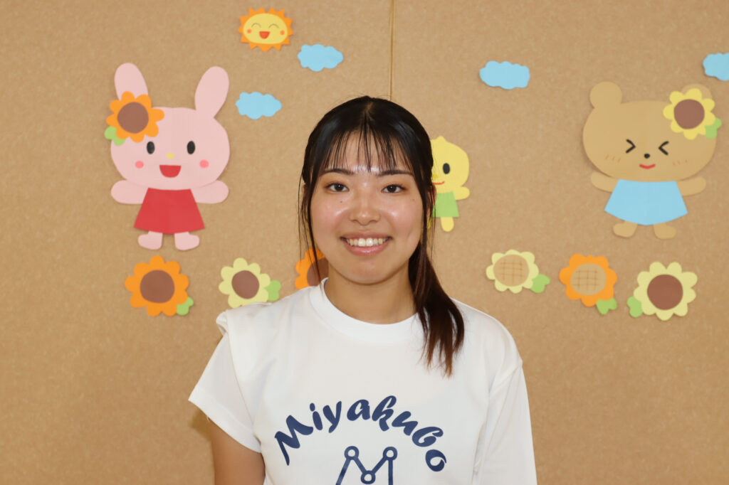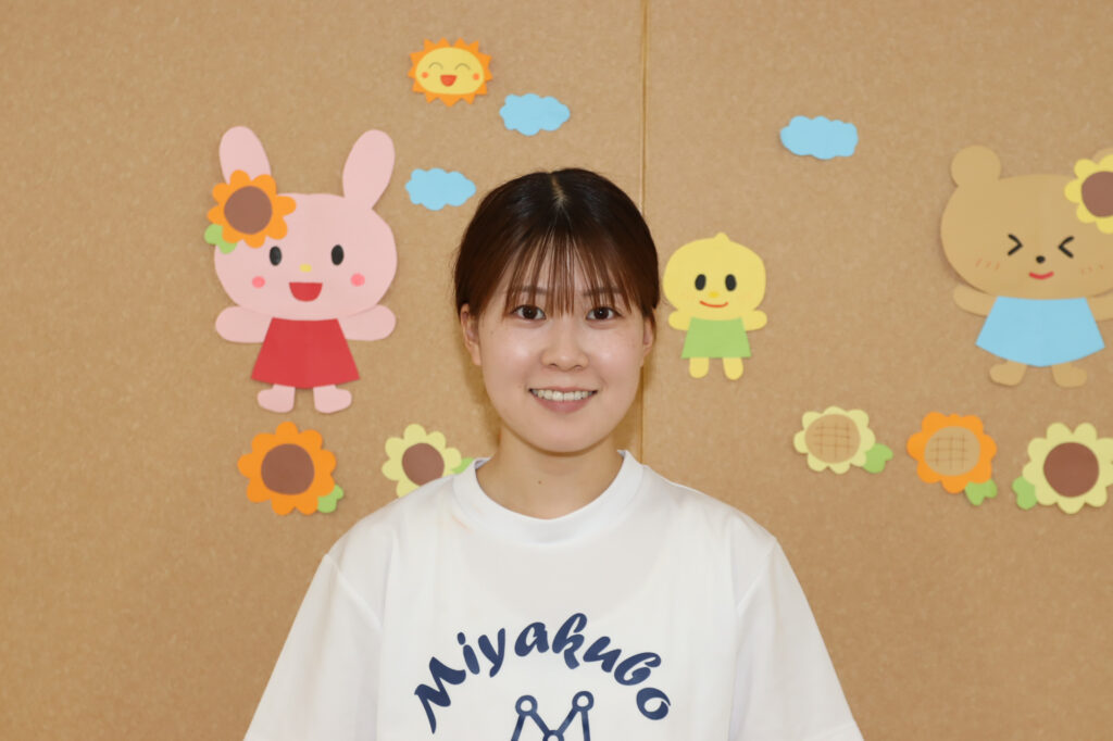 母が保育の仕事をしていたこともあり、小さいころから子どもと関わる機会が多く、気がつけば「子どもが好き」なのが当たり前でした。就職活動では3つの園を見学しましたが、宮久保幼稚園の先生方の明るくて優しい雰囲気に惹かれ、ここで働きたい!と自然に思いました。実際に入ってからも、みなさん本当に優しくて、わからないことも丁寧に教えてくださるので、毎日がとても働きやすいです。