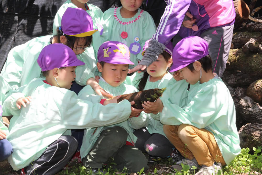 そして、「みんな」は子ども達の成長にしたがい、同じクラスの友達から年齢の違うクラス、お年寄り、話す言葉や肌の色の違う人、虫・植物・動物などの自然にまで広がっていきます。子どもの成長にとってかけがえのない「みんな」に、たくさん出会ってほしいと願っています。